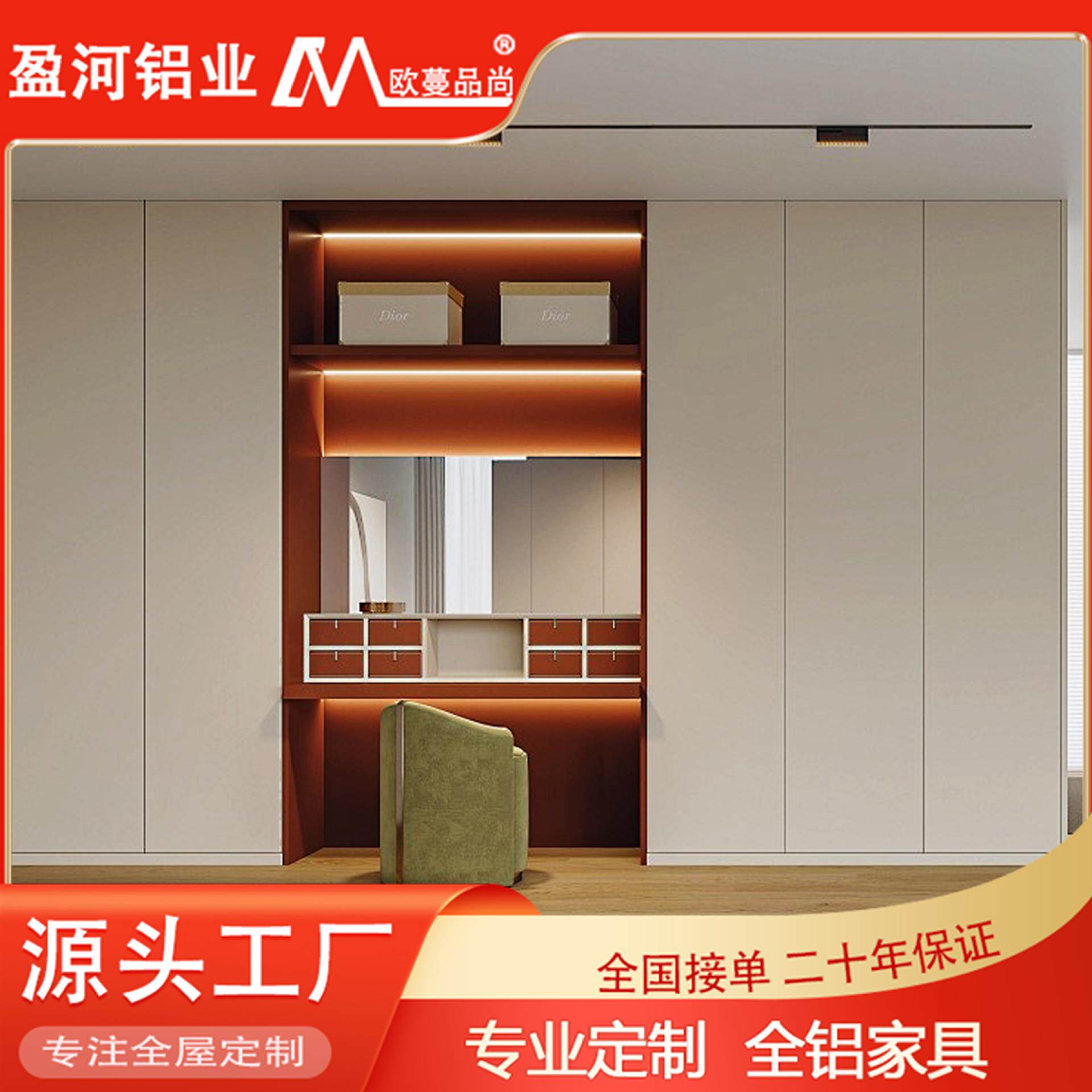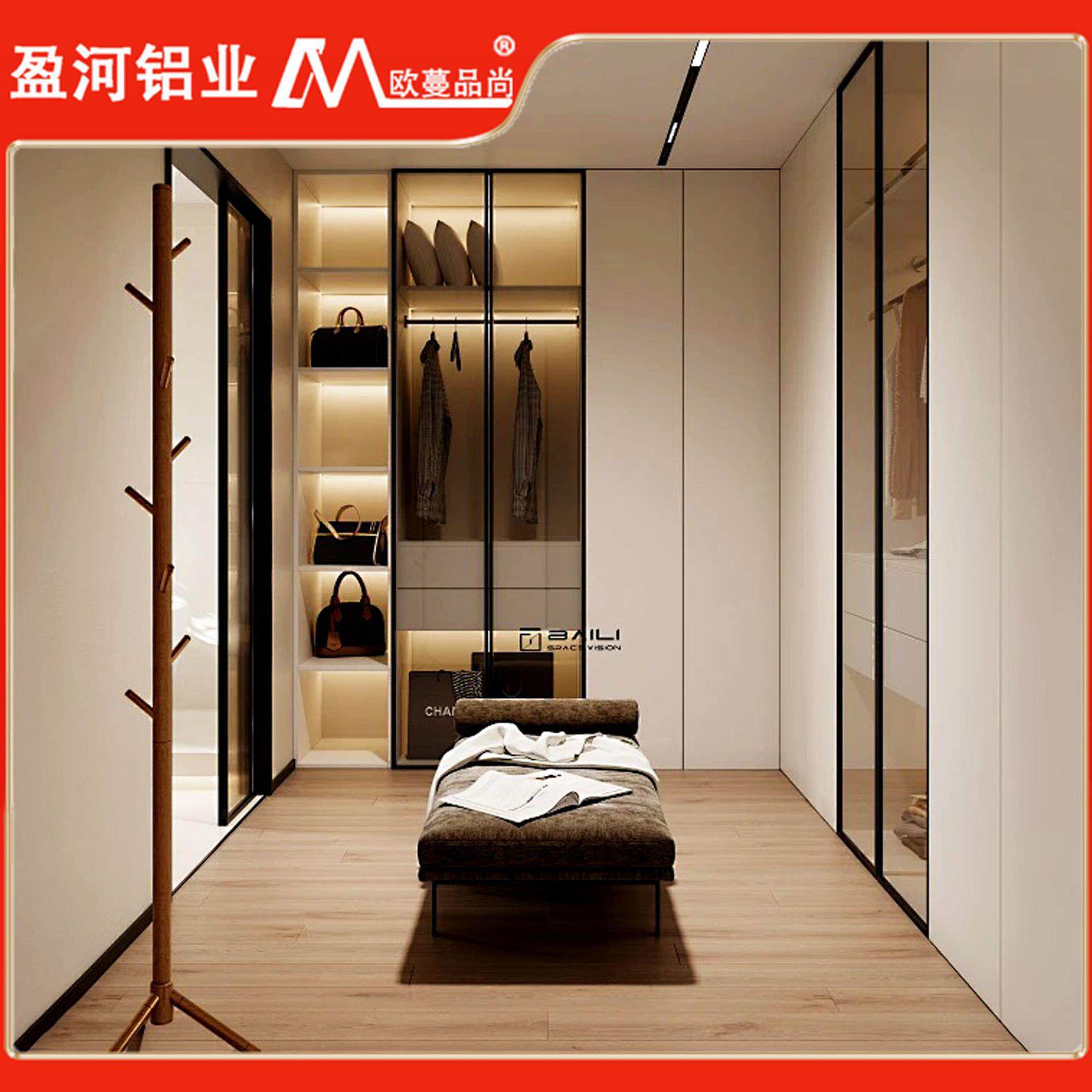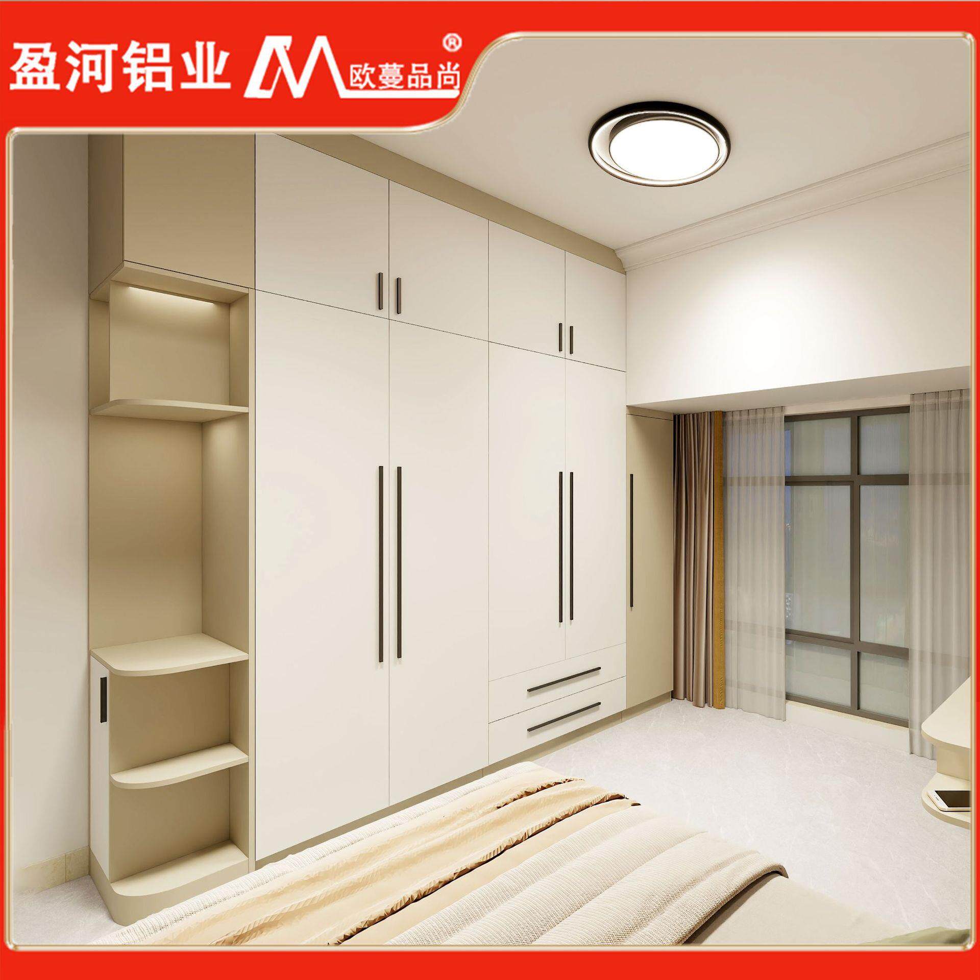 现代简约卧室衣橱靠墙一门到顶大容量整体收纳铝合金衣柜定做厂家