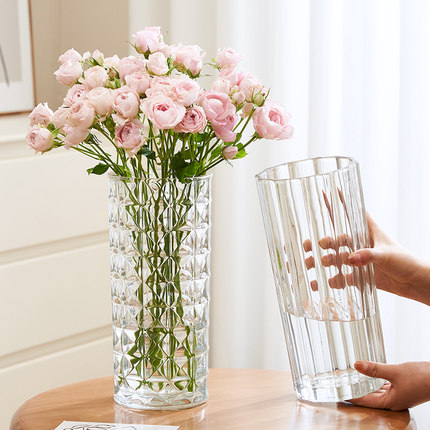 加厚直筒水晶玻璃花瓶透明大插花富贵竹水养玫瑰摆件客厅现代简约