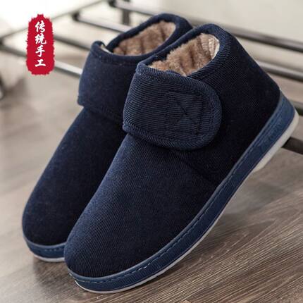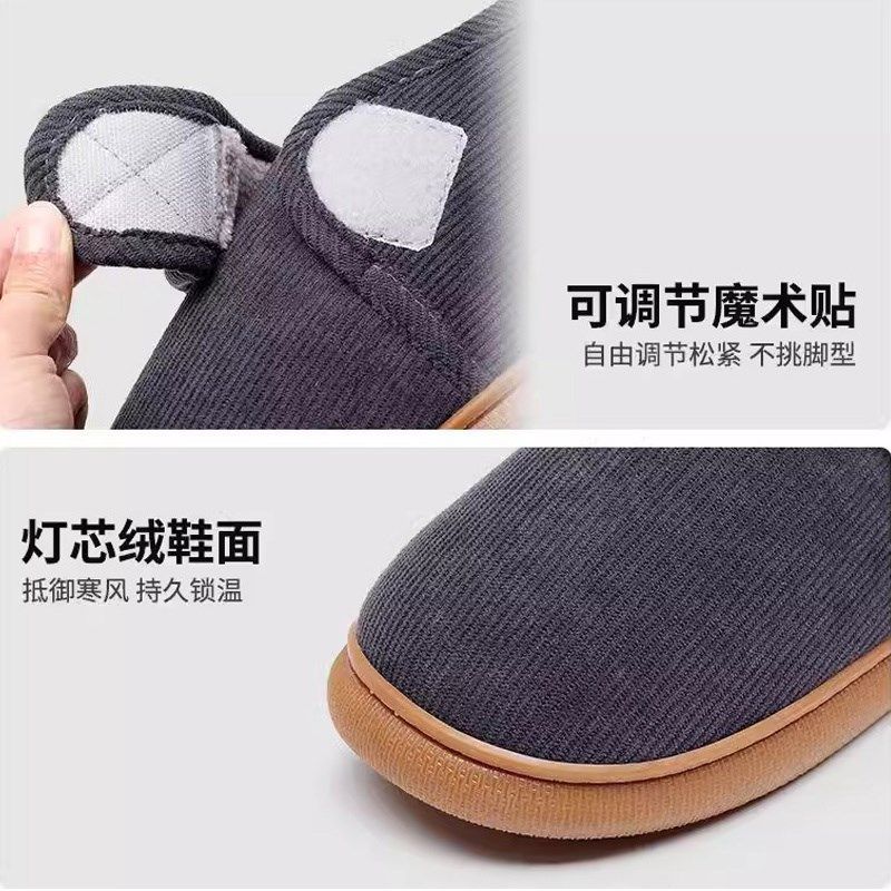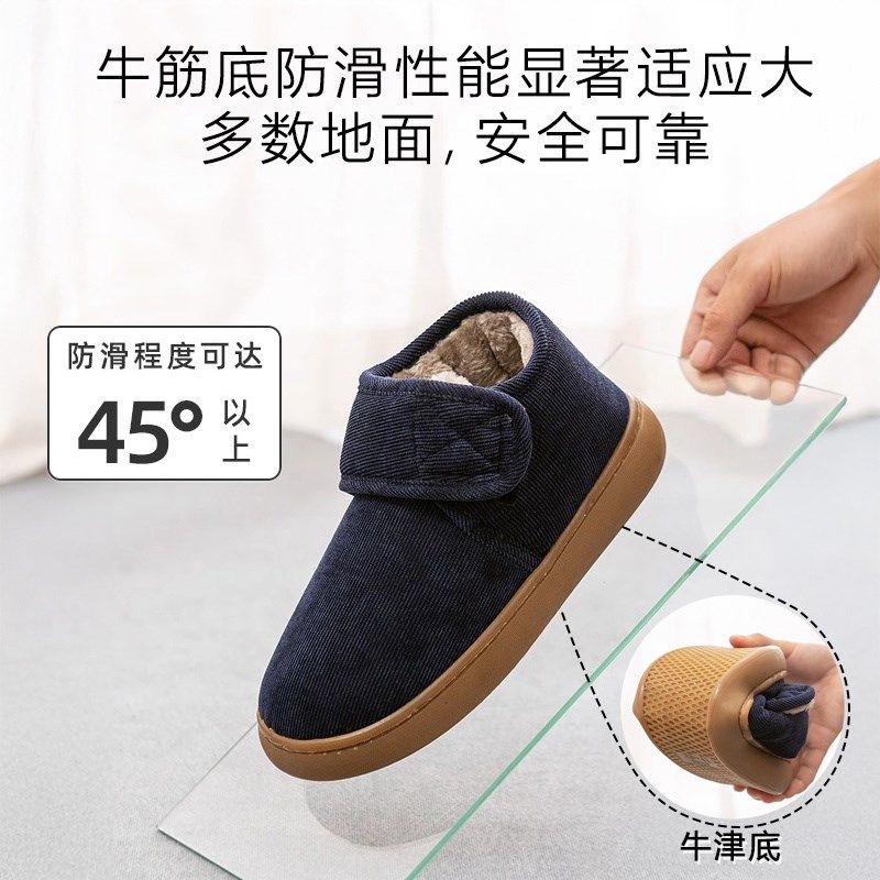 秋冬中老年人保暖棉拖鞋2024新款男女包跟加绒牛筋底防滑外穿棉鞋