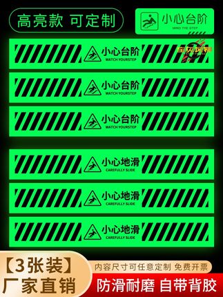 小心台阶小心地滑夜光提示贴