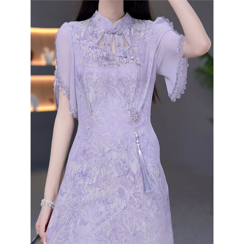 性感新中式蕾丝改良旗袍连衣裙女2025夏季新款修身显瘦中长款裙子