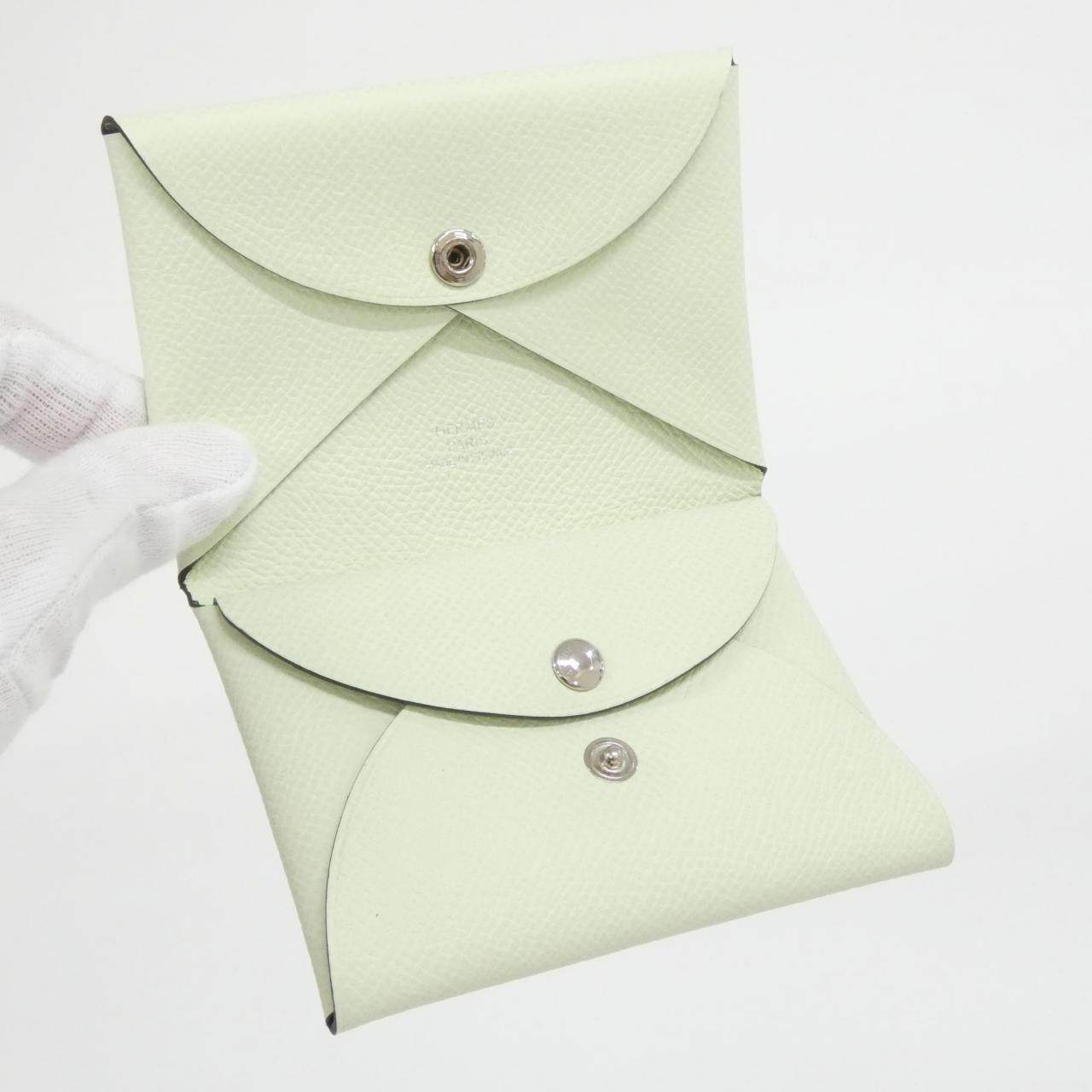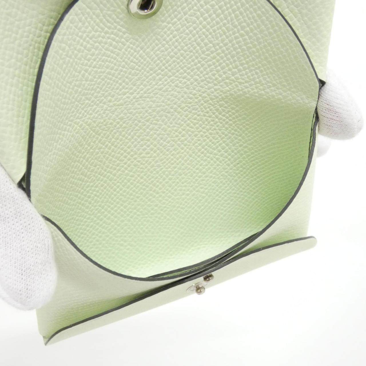 中古Hermes爱马仕A级95新CALVI DUO钱包硬币包气泡绿卡包