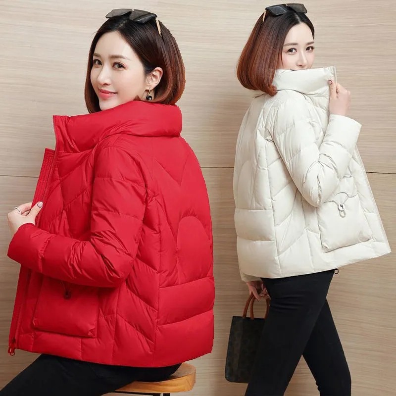 羽绒棉服女短款2025冬新款百搭休闲简约纯色保暖中年妈妈棉袄外套