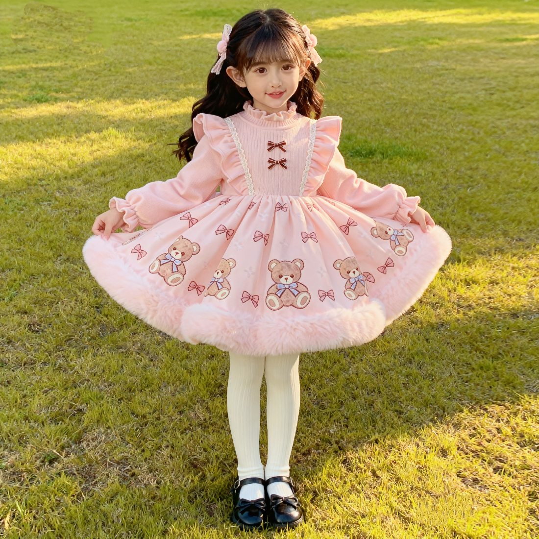 女童2025秋冬新款加绒连衣裙宝宝可爱甜美洛丽塔生日公主蓬蓬礼服