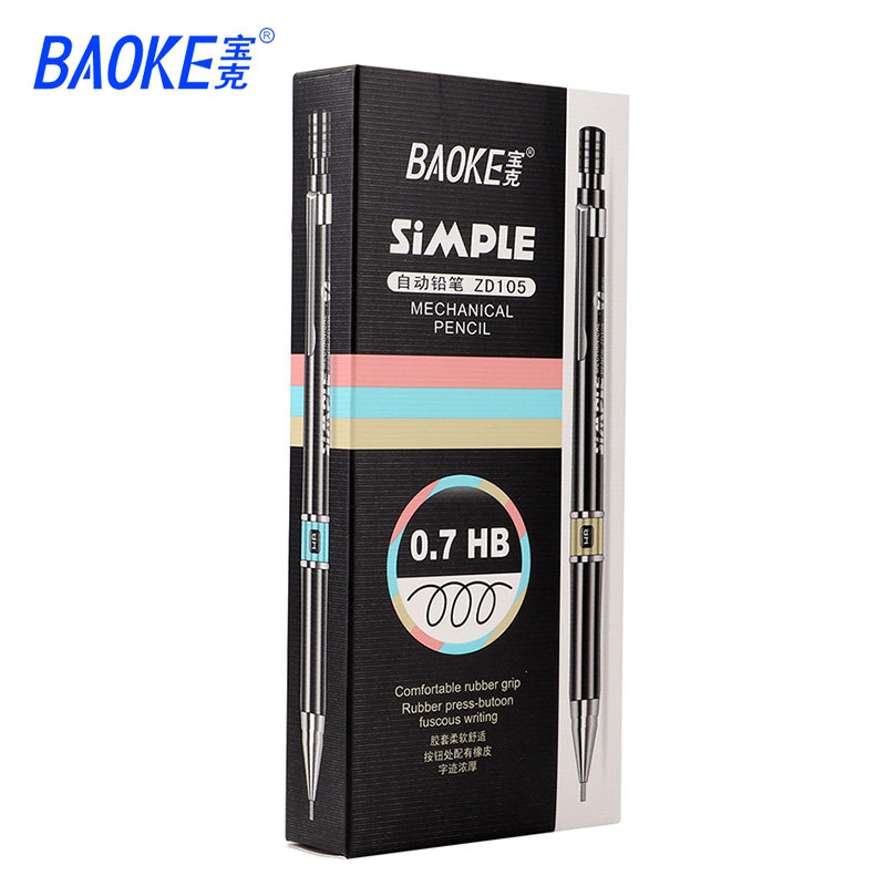 宝克自动铅笔0.7mm0.5HB办公用品素描笔绘画铅笔学生铅笔105黑色