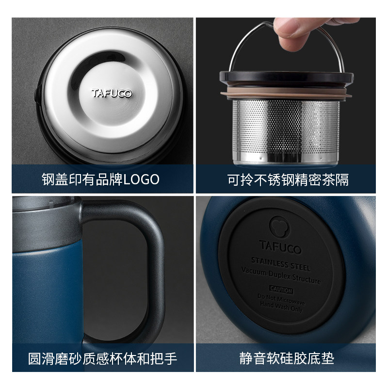 日本泰福高316不锈钢保温杯带手柄大容量水杯办公保温茶杯带滤网