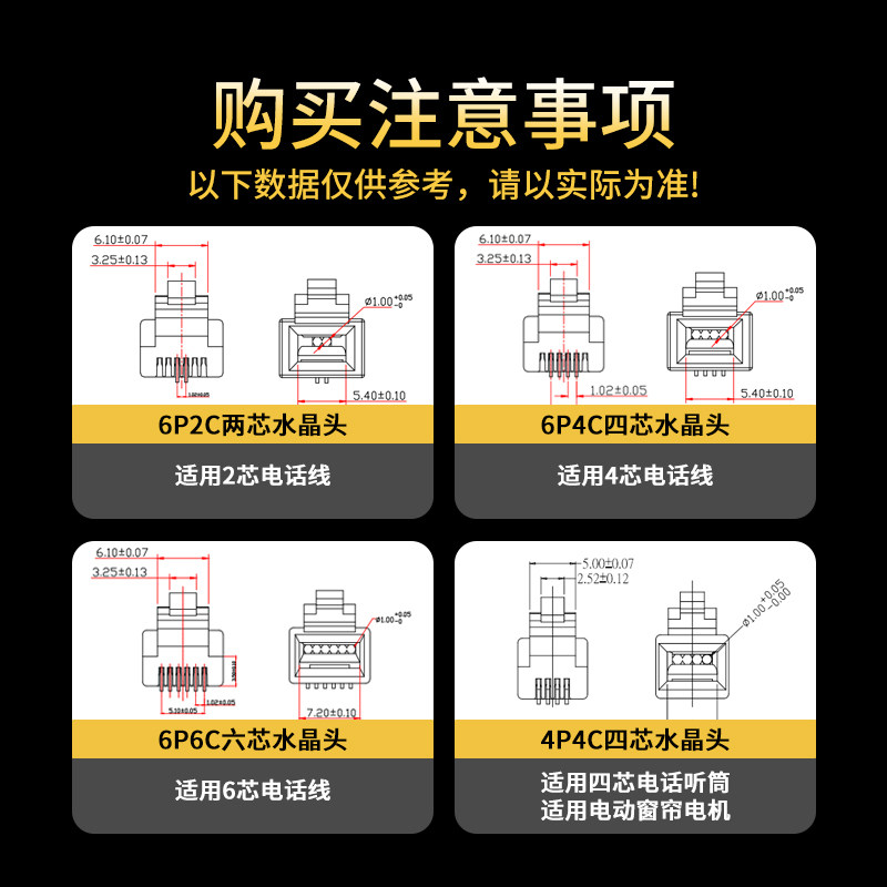 金友春电话水晶头2芯4芯6芯电话线传真机rj11连接线器头6p2c4c6c