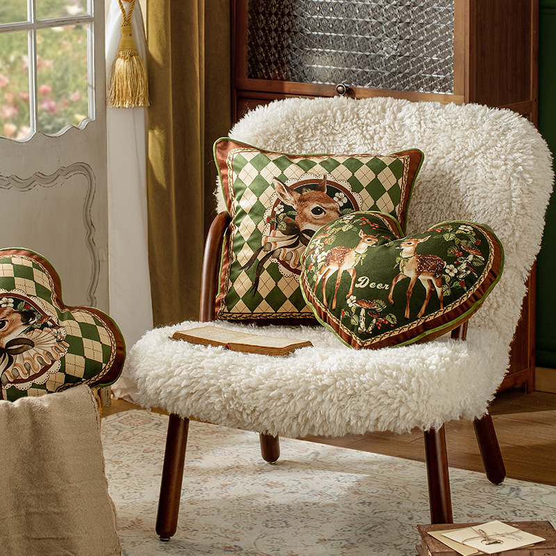范居态度伊尼复古沙发客厅抱枕靠垫氛围感轻奢靠枕四叶草爱心枕套