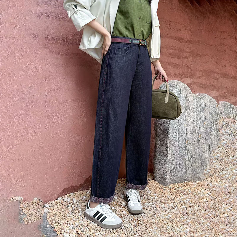 韩尚裤业2025秋新款宽松九分老爹牛仔裤女梨形身材显瘦萝卜哈伦裤