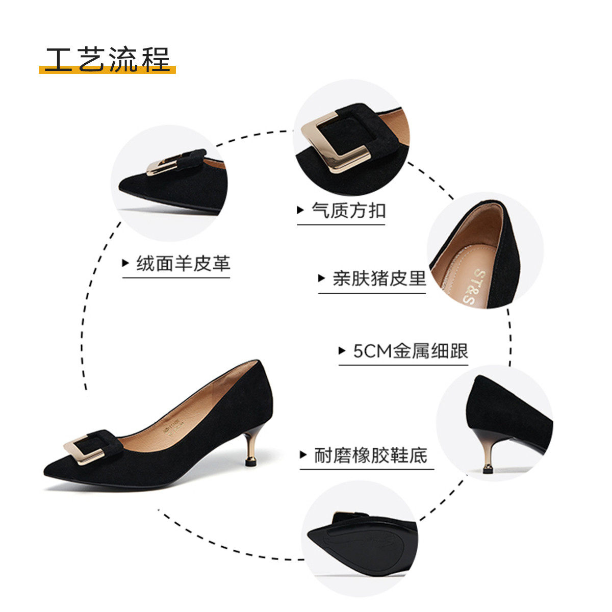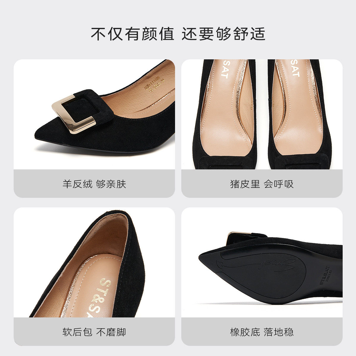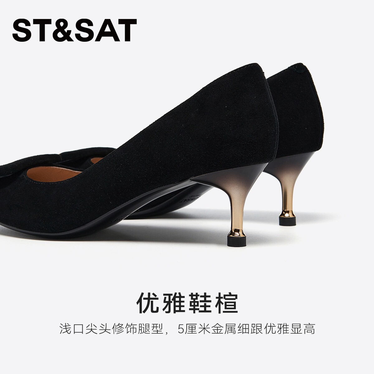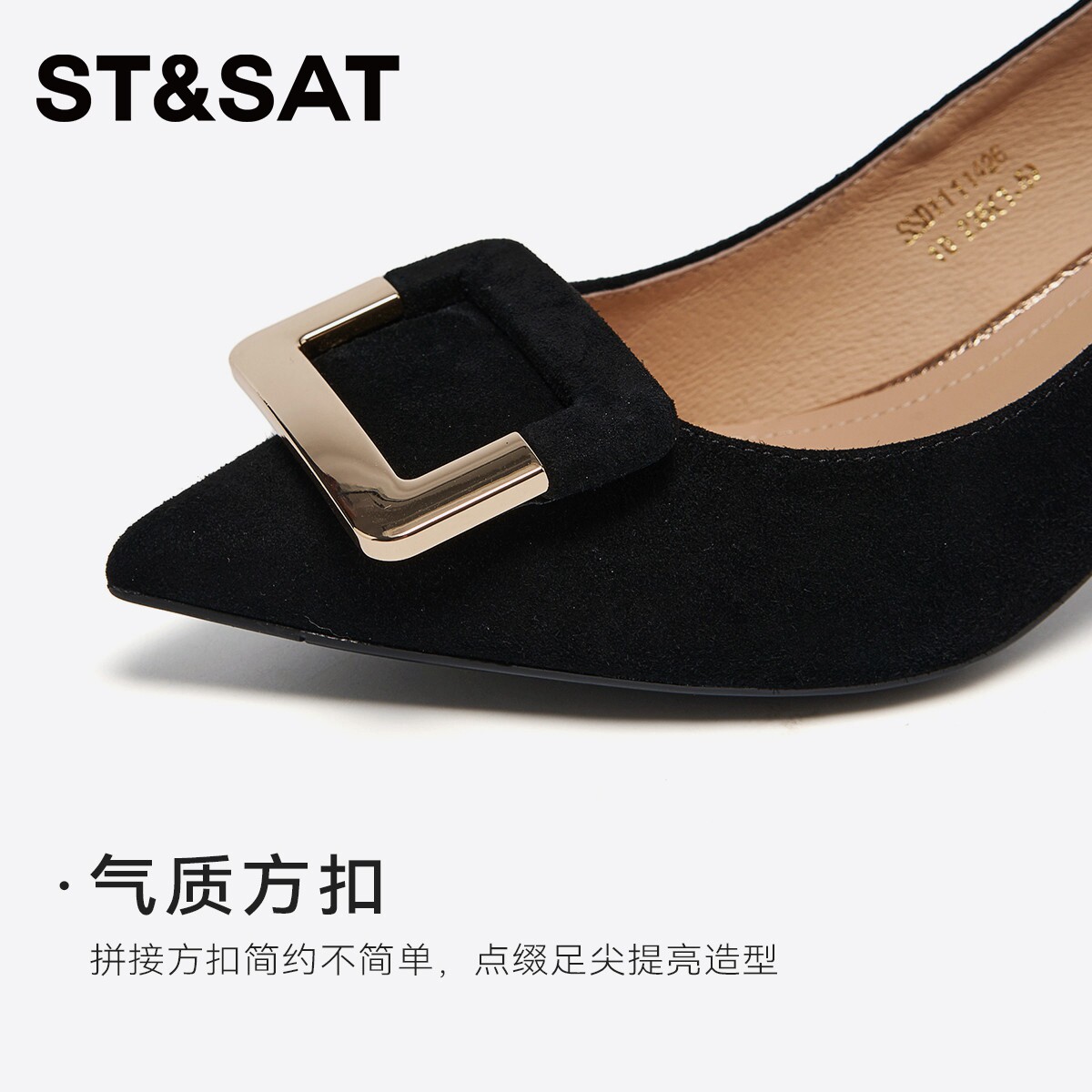 星期六羊皮高跟鞋2025秋季新款尖头细跟黑色工作职业正装浅口单鞋