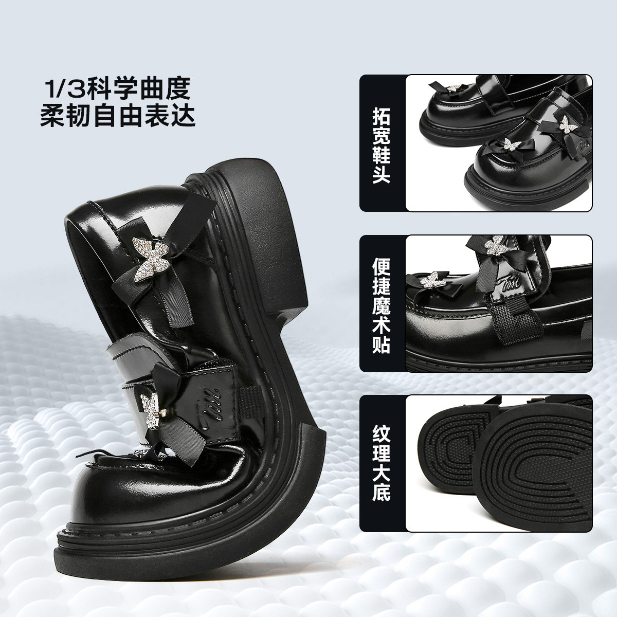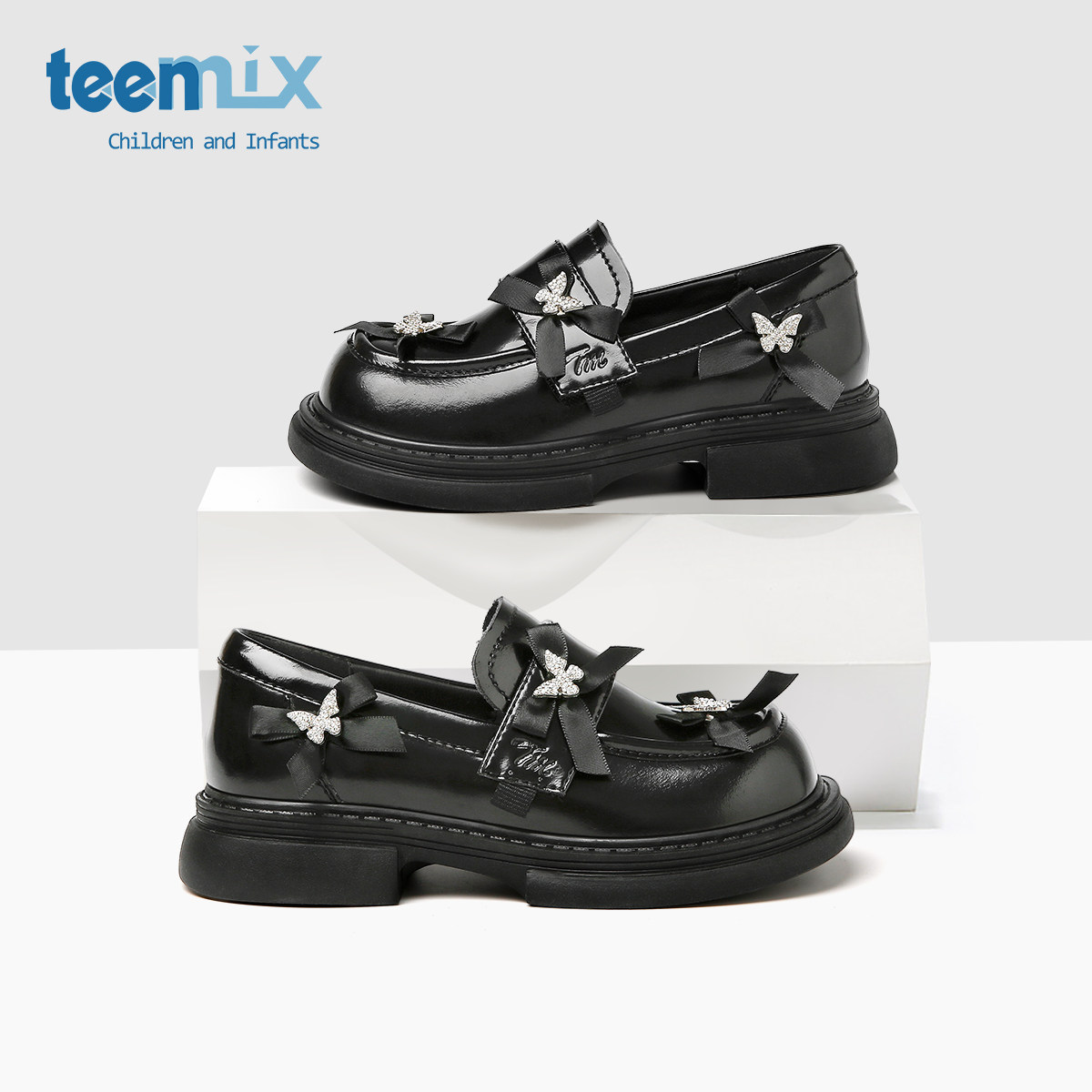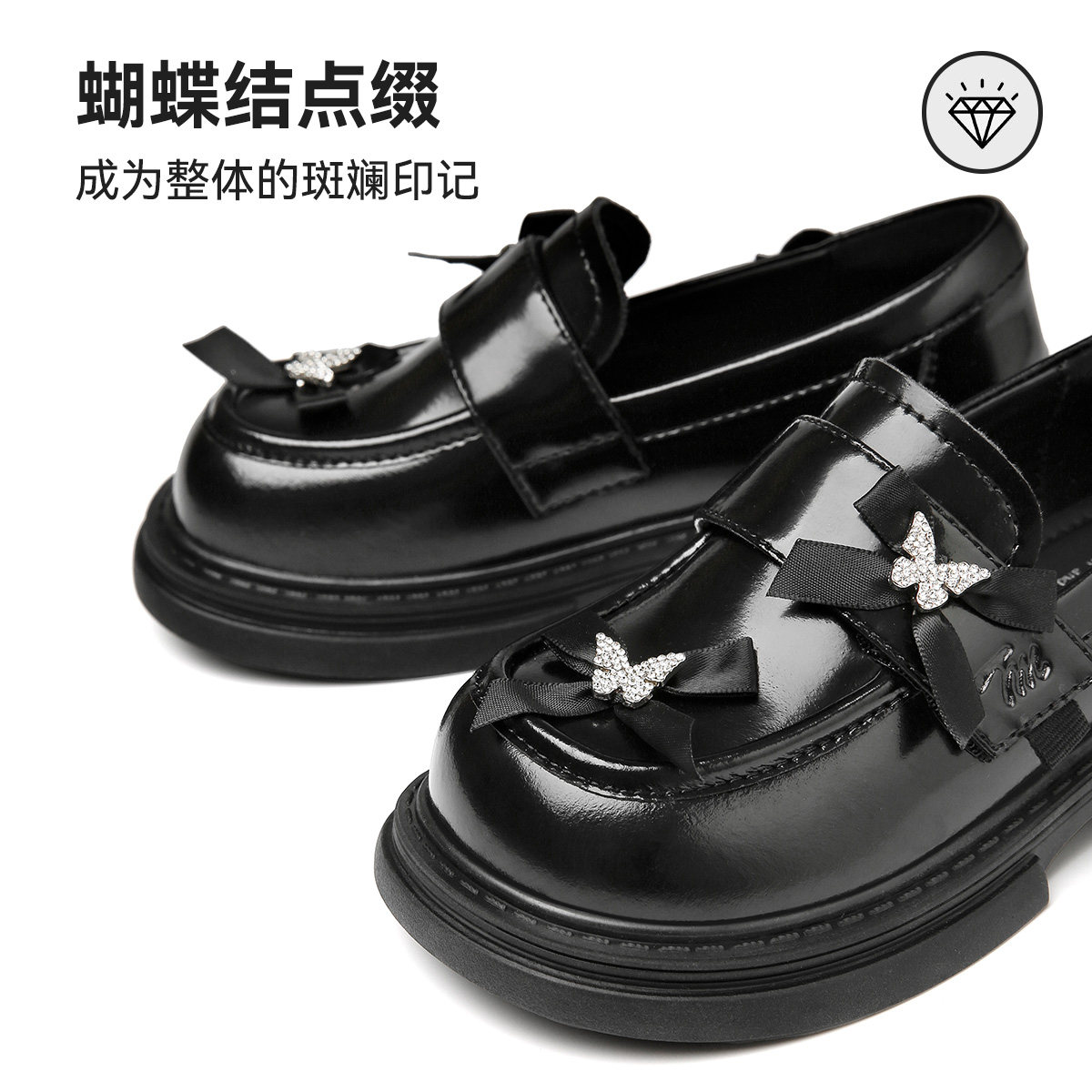 天美意童鞋2026春秋季新款女童软底洋气黑色小皮鞋女孩公主鞋鞋子