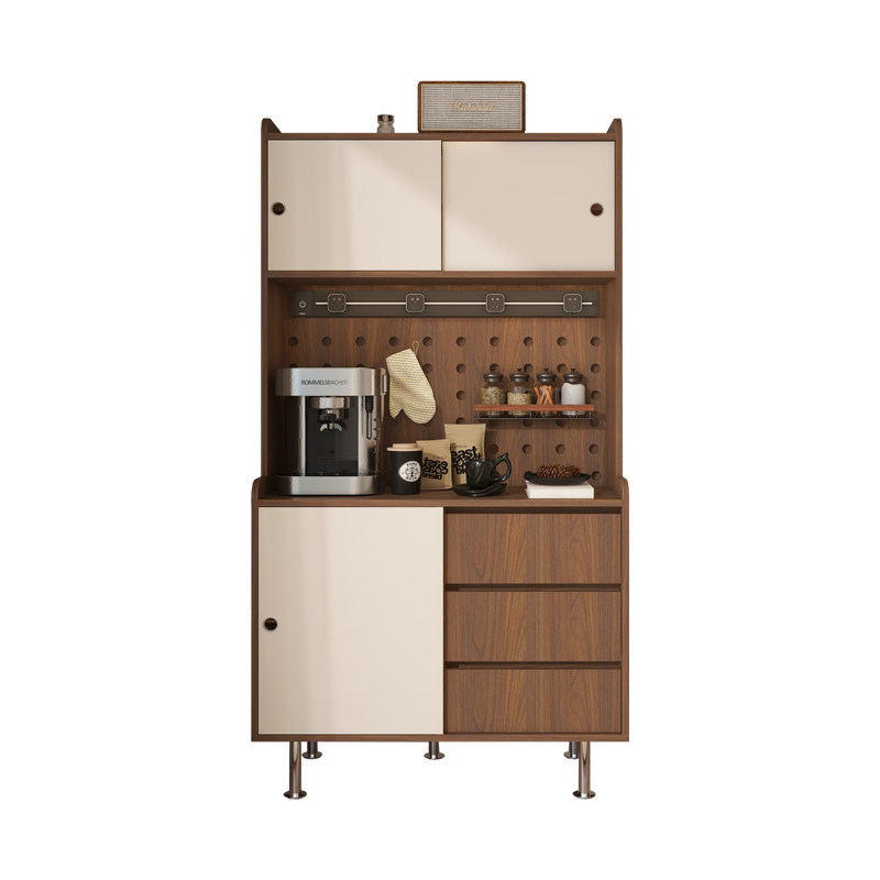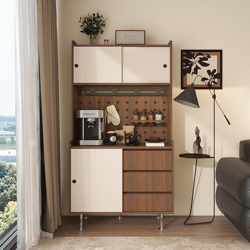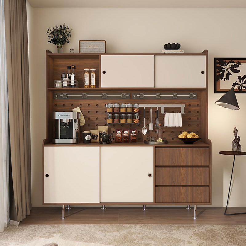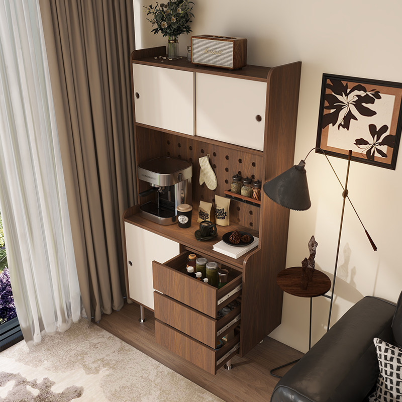 实木复古风餐边柜一体靠墙家用小户型客厅咖啡机柜餐厅落地储物柜