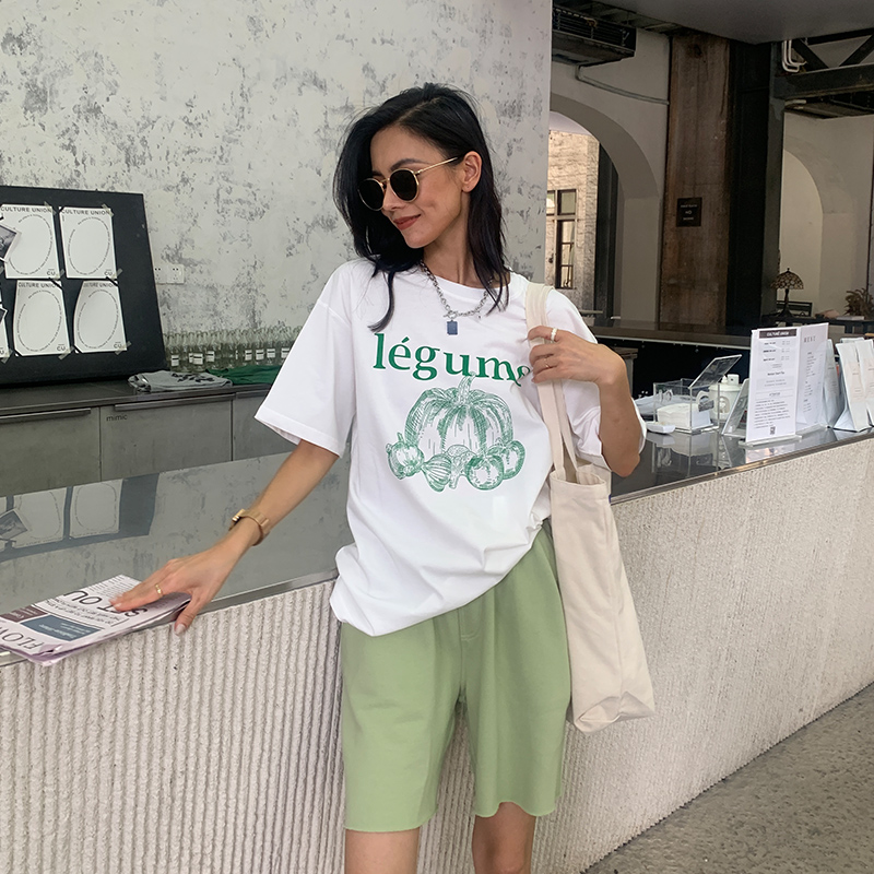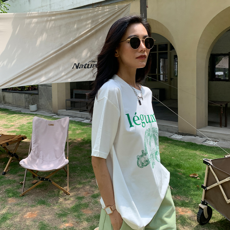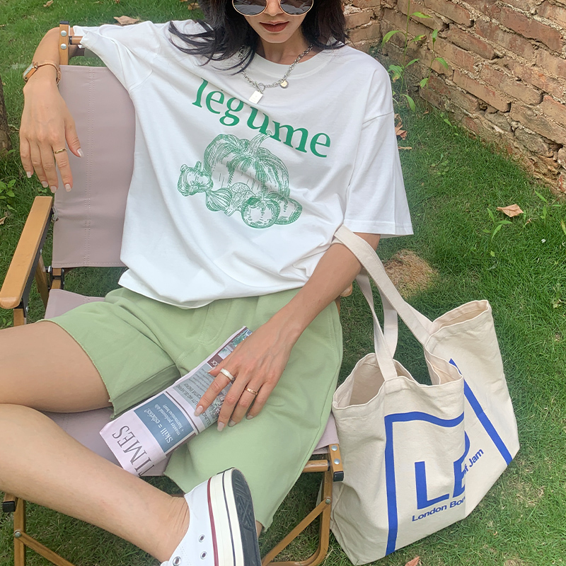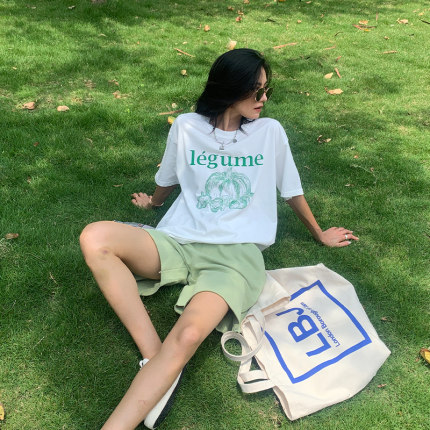 宋小妞 绿南瓜t恤女夏季纯棉短袖设计感小众字母印花宽松韩版上衣