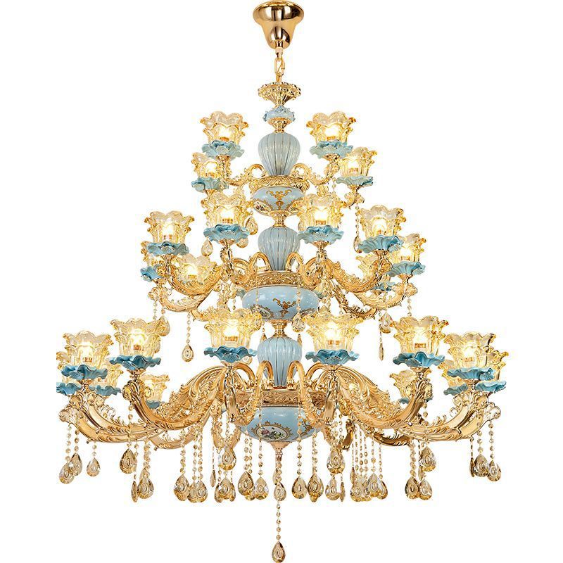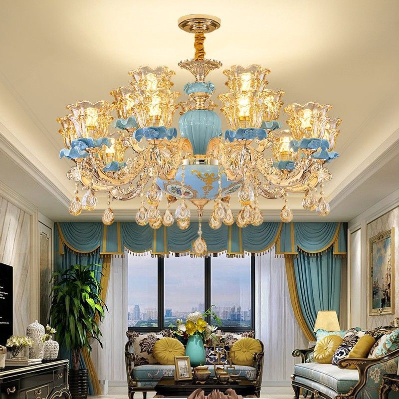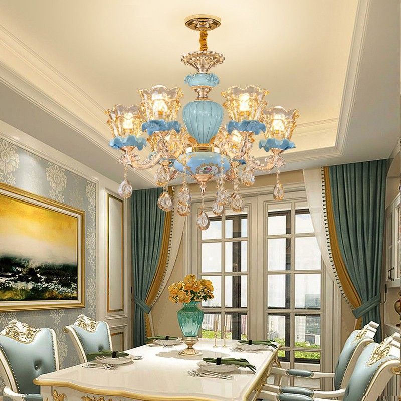 欧式客厅吊灯水晶陶瓷餐厅卧室灯现代简约大气别墅复式楼大厅灯具