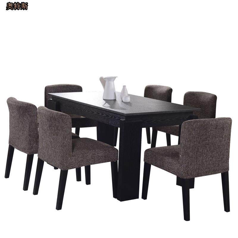 全实木火烧石餐桌椅黑色后现代餐桌椅1米4水曲柳小户卡座咖啡饭桌