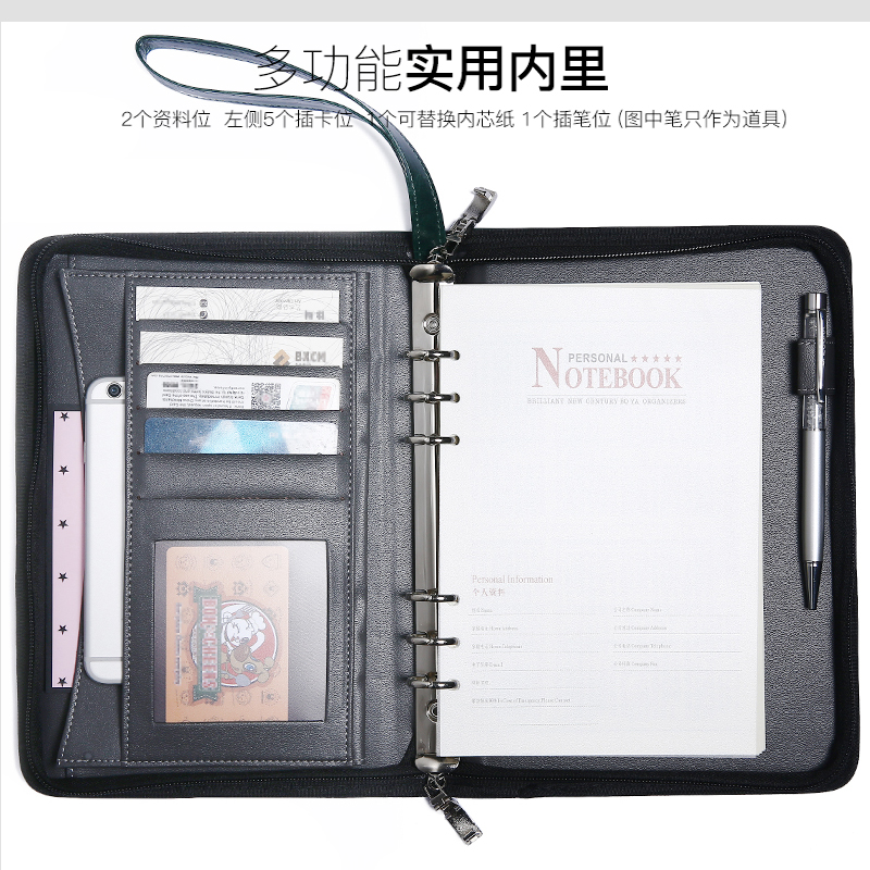 卡诺卡高档密码锁日记本商务a5活页笔记本机密文件夹多功能指纹拉链带锁工作记事本加厚手账本保密本子定制