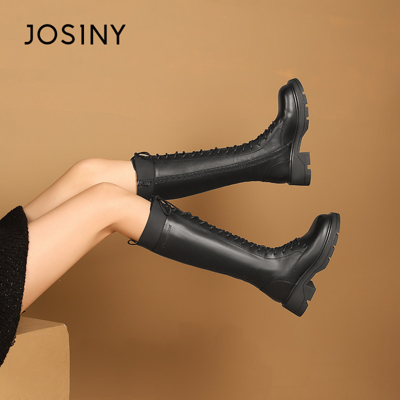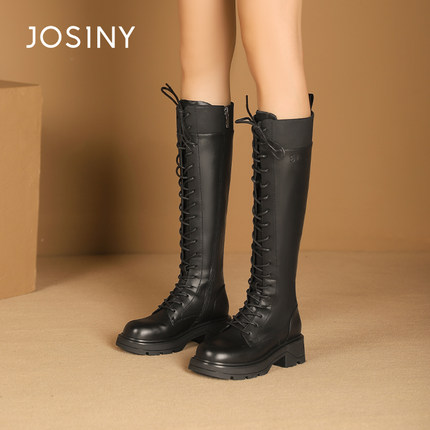 卓诗尼女鞋撤柜正品厚底增高长筒靴女款冬季加绒加厚骑士靴休闲鞋