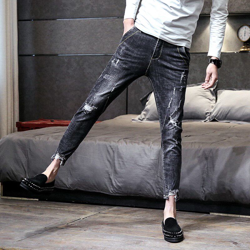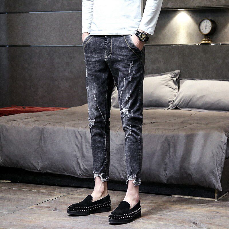 破洞牛仔裤男潮牌九分裤夏季薄款修身潮流百搭潮流休闲小脚9分裤