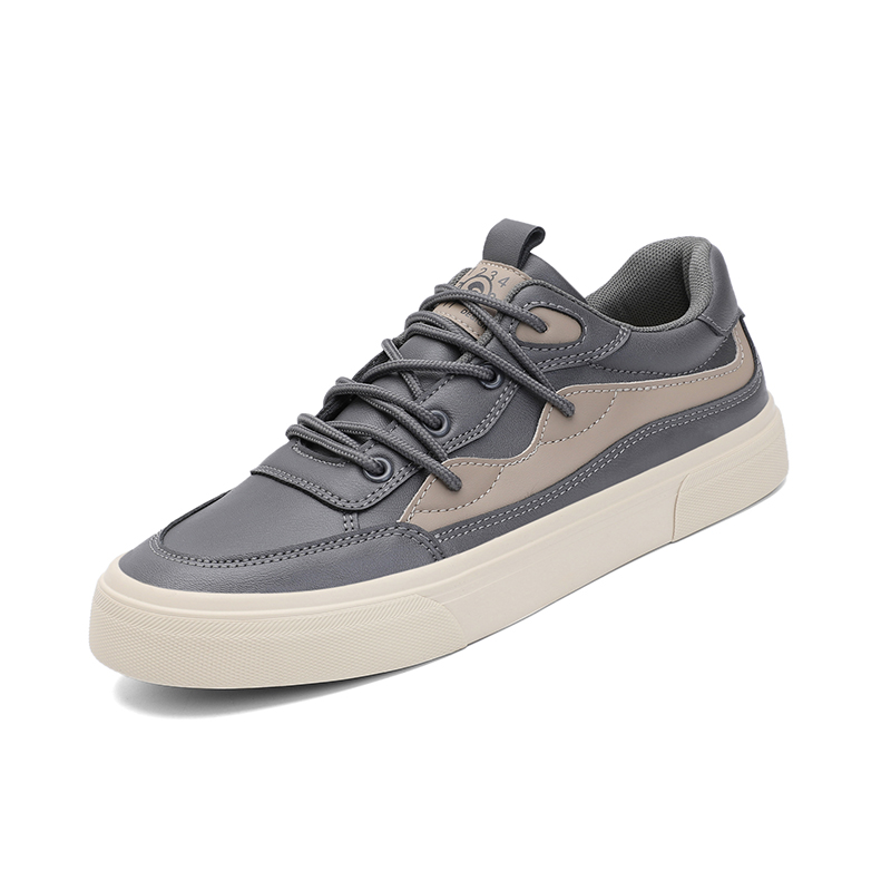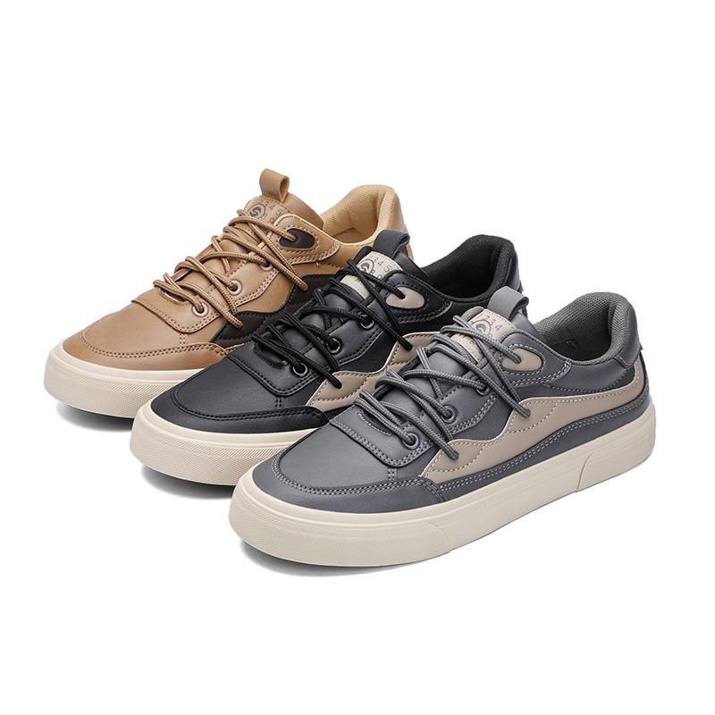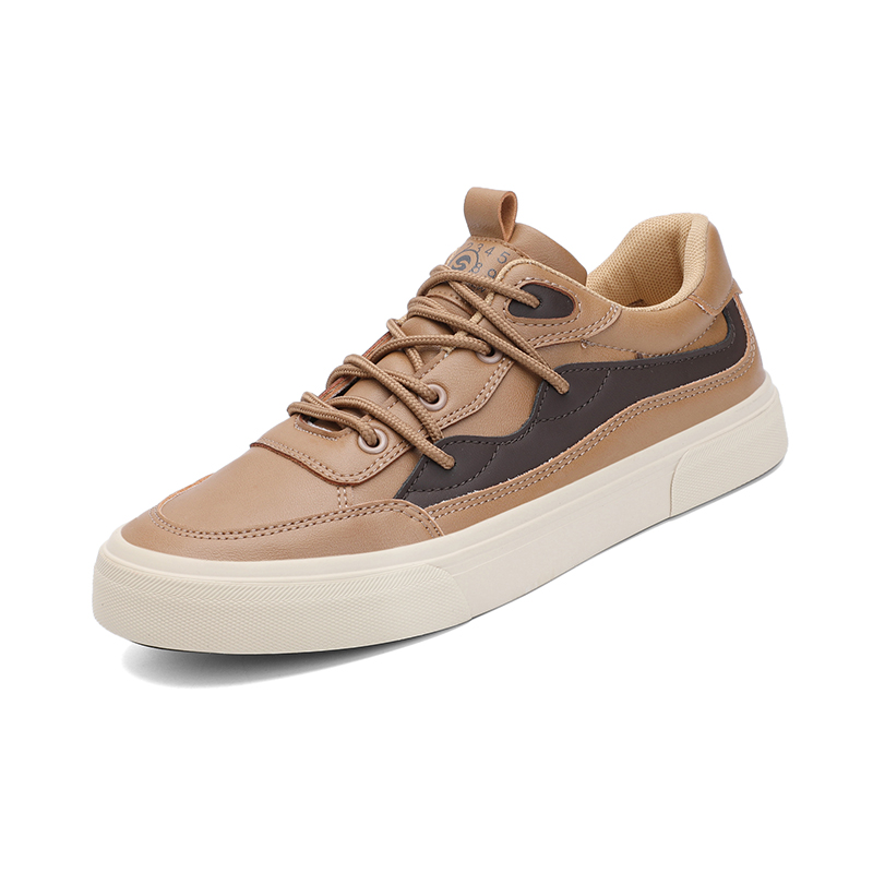 25867闪步男士新款潮流百搭休闲简约皮面春秋季平底系带开车板鞋