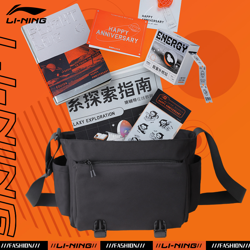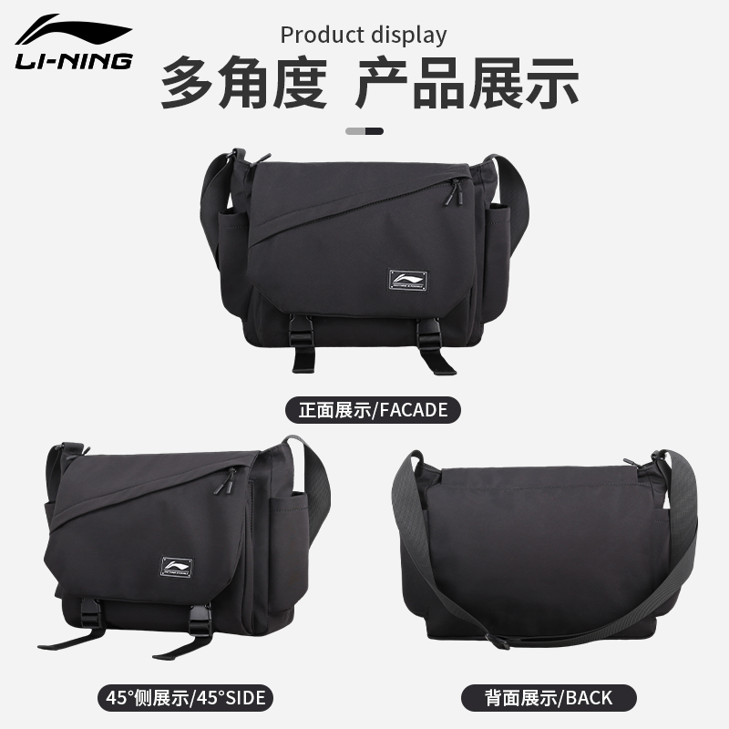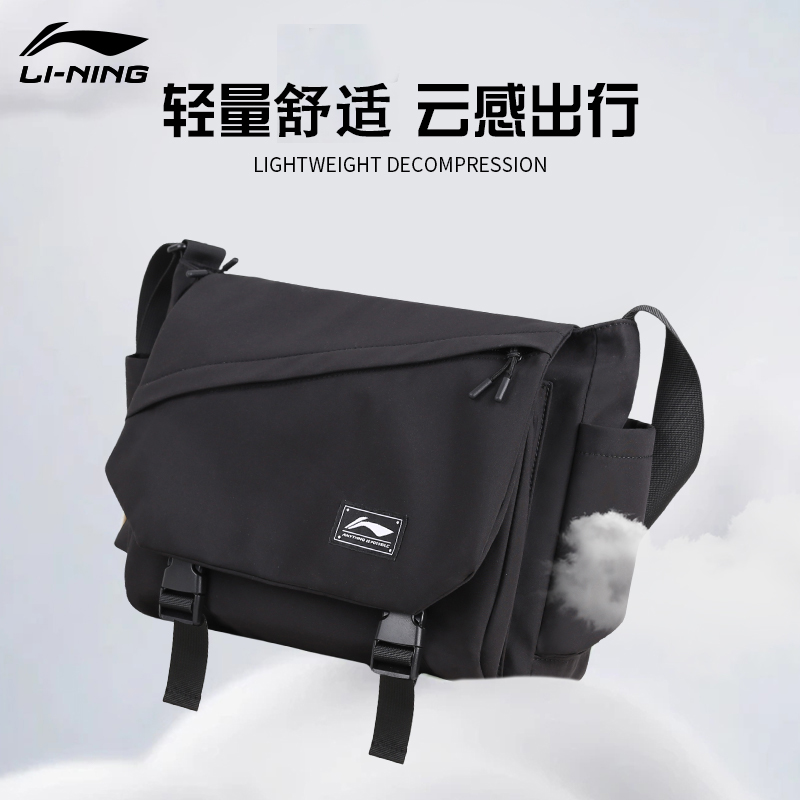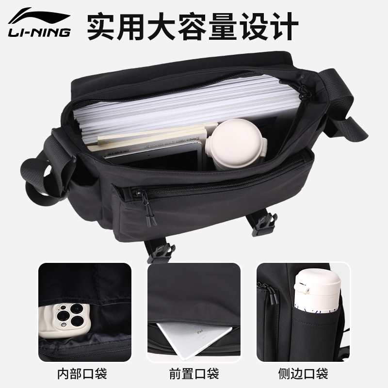 李宁大容量单肩斜挎背邮差包腋下男女款通勤旅行款户外骑行机能风