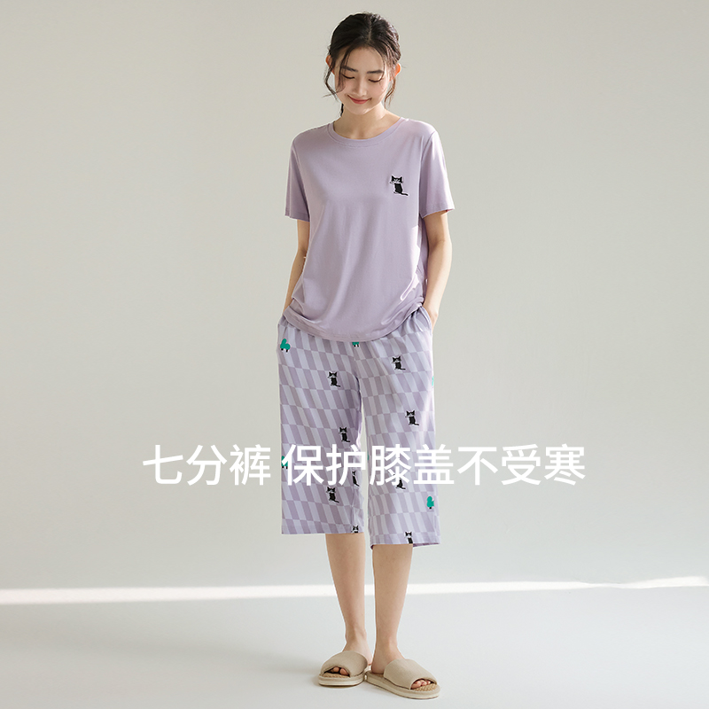 康妮雅短袖睡衣女夏季薄款宽松休闲大码可外穿柔软家居服夏天套装