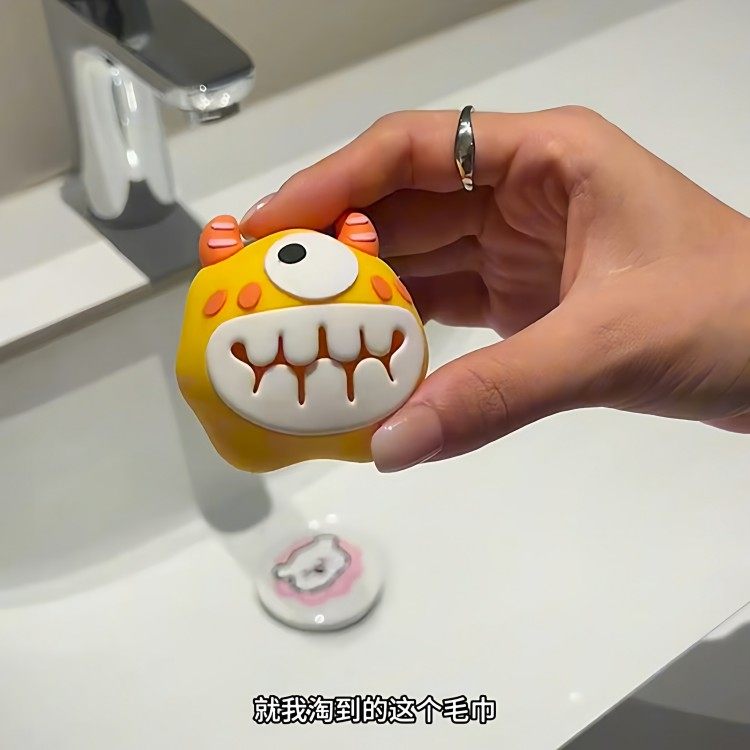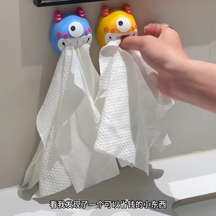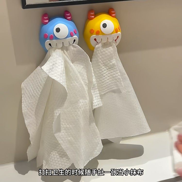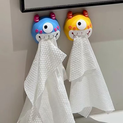 多巴胺小怪兽挂钩高颜值家用卫生间免打孔毛巾架吸盘式洗脸巾收纳