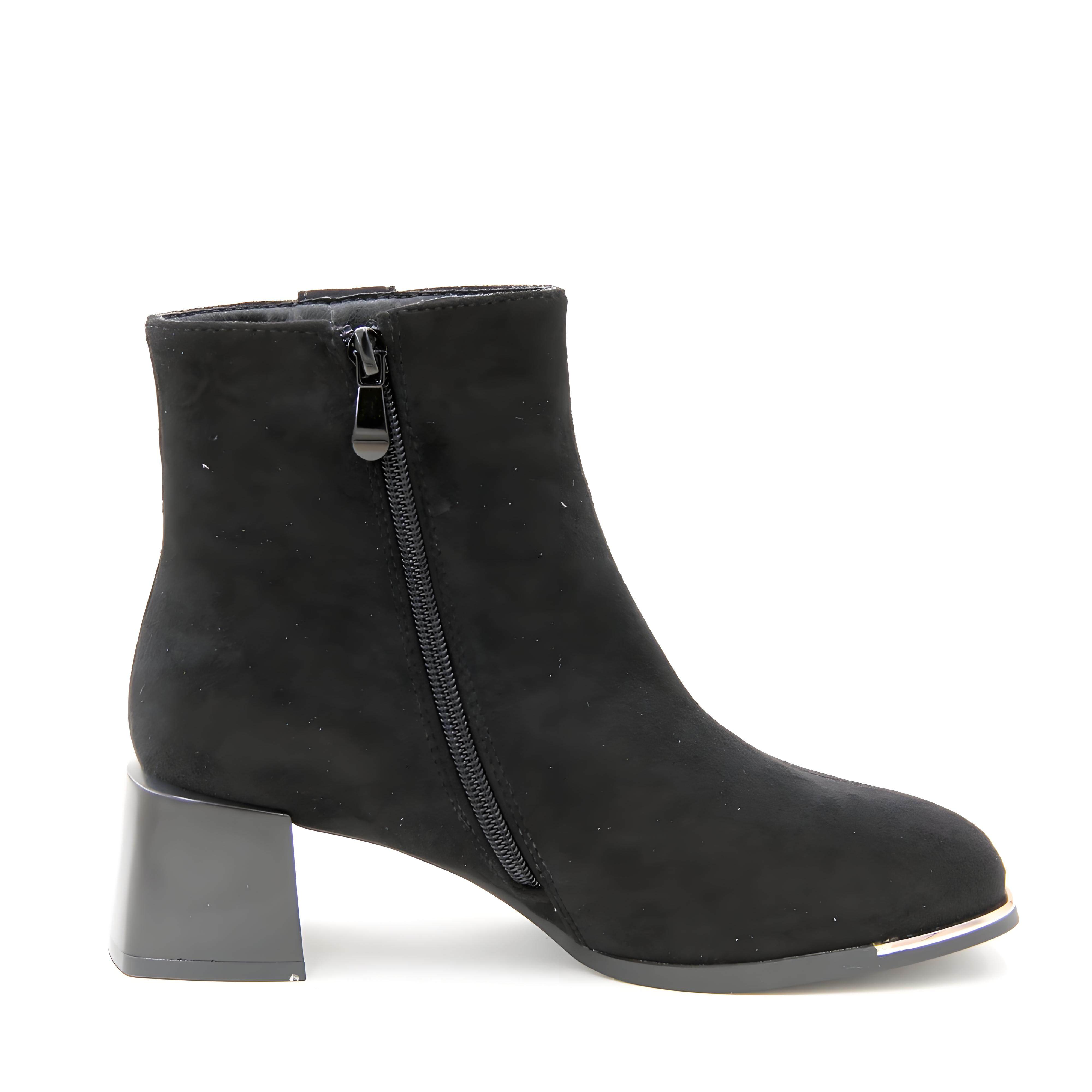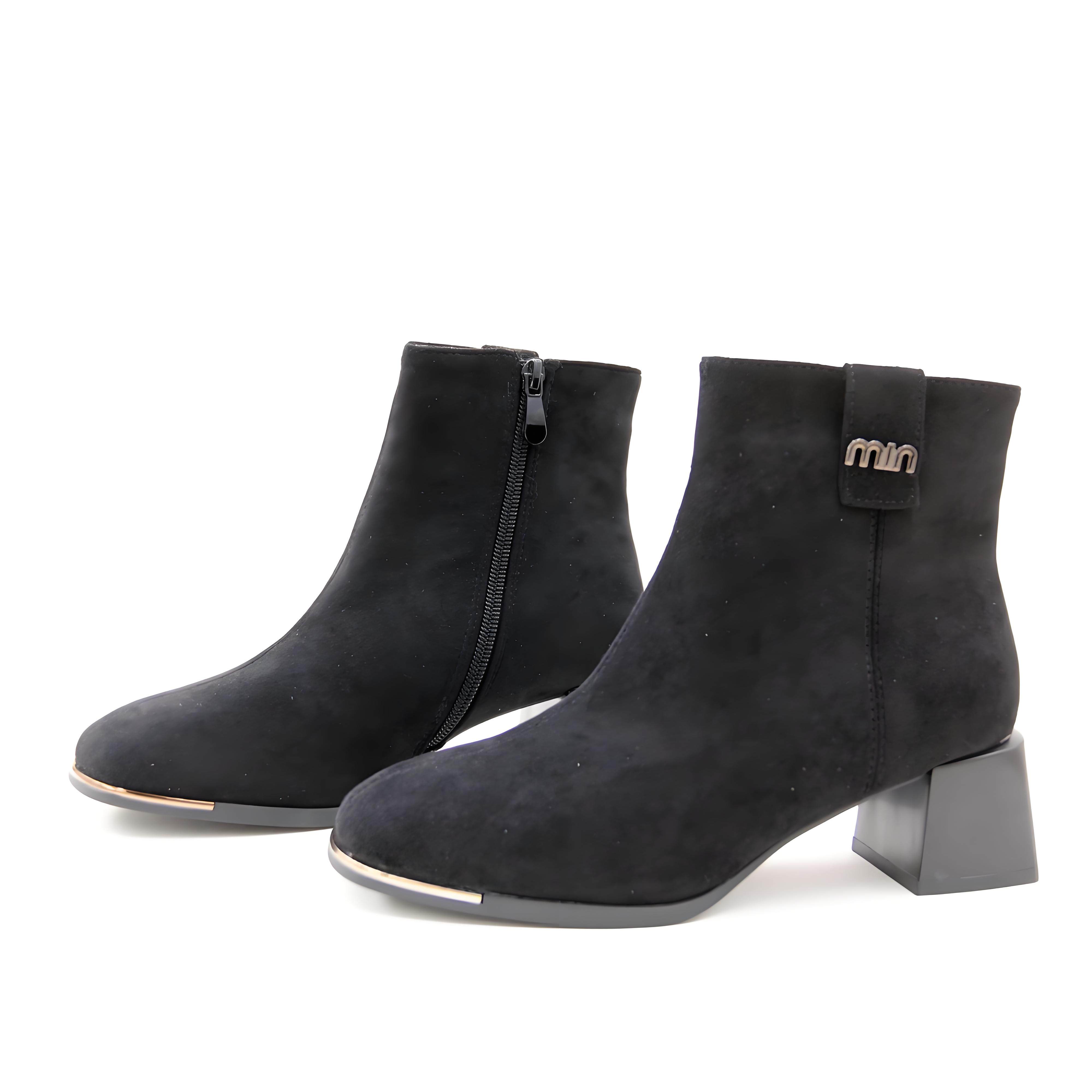 大东2024冬季新款冬季新款淑女风绒面短靴粗跟时装靴加绒女靴