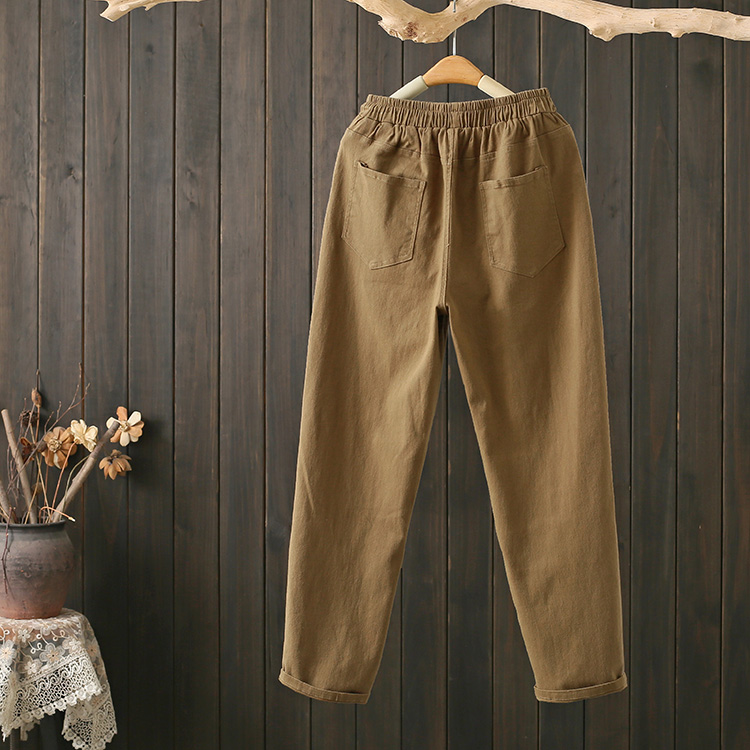 秋季大码200斤复古直筒休闲裤女长裤宽松显瘦弹力卡其色哈伦裤潮