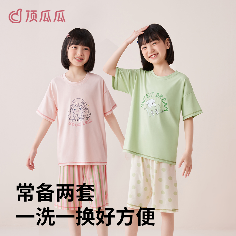 顶瓜瓜女童睡衣儿童莫代尔套装短袖女孩空调服中大童夏薄款家居服