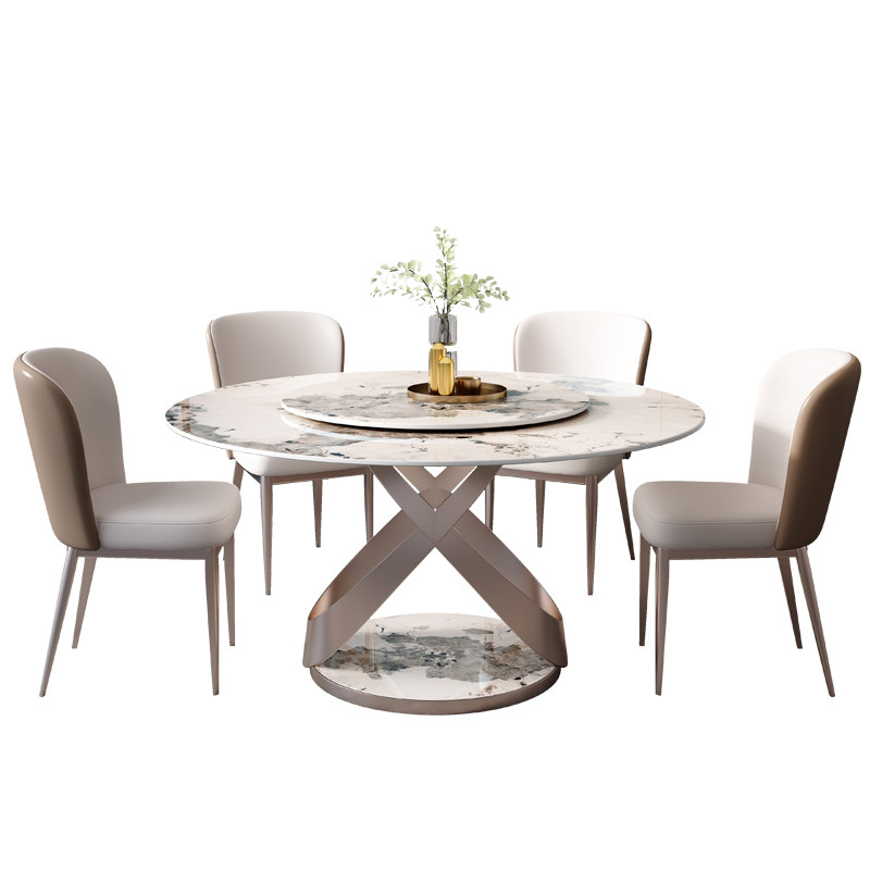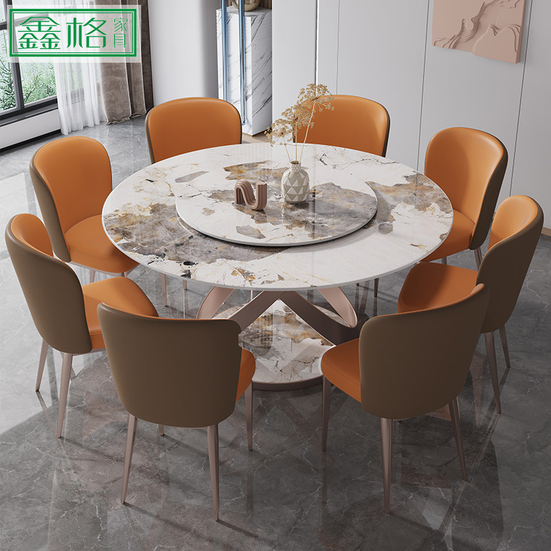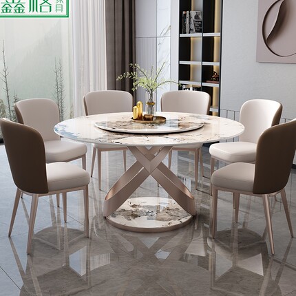 岩板餐桌椅组合轻奢现代简约家用小户型圆形电磁炉吃饭桌子带转盘