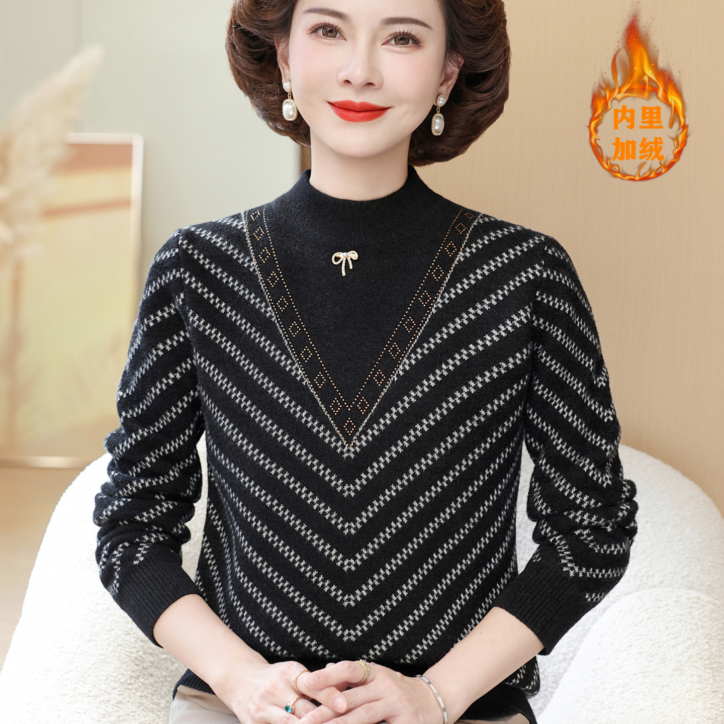 妈妈秋冬装加绒加厚毛衣一体绒保暖上衣中老年人针织内搭打底小衫