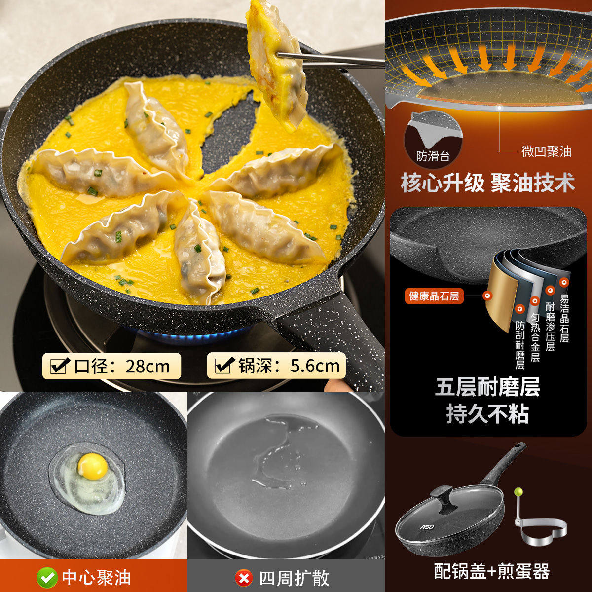 爱仕达不粘煎锅聚油不凸底不粘锅家用小炒锅燃气电磁炉通用平底锅