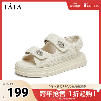 Tata他她小香风奥莱凉鞋女鞋休闲厚底沙滩凉鞋2025秋新款GOX15BL4