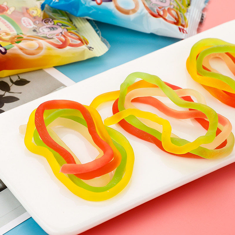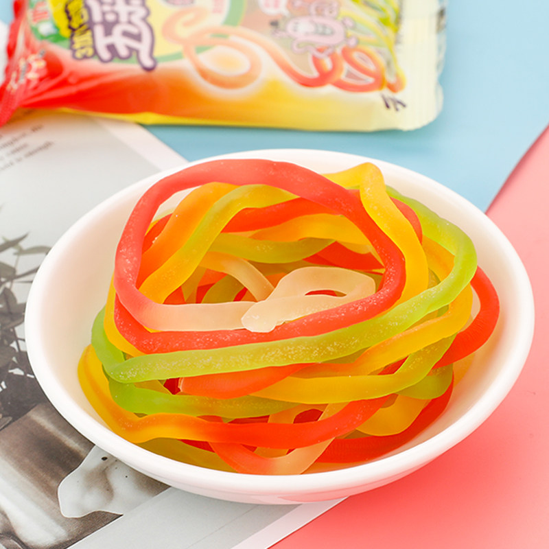 优卡五彩绳软糖8090后小时候怀旧小零食童年趣味水果糖果橡皮qq糖