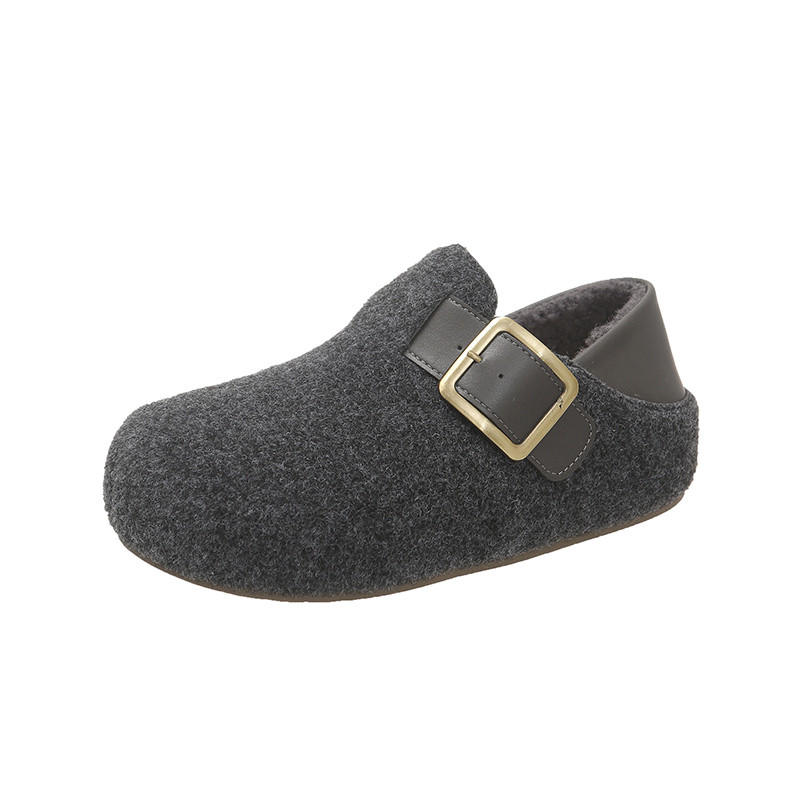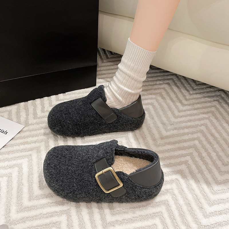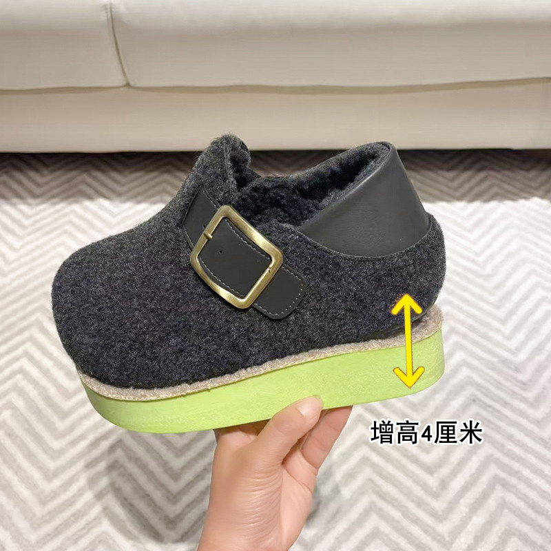 勃肯鞋女灰色秋冬新款毛呢厚底百搭两穿毛毛鞋加绒保暖穆勒鞋棉鞋