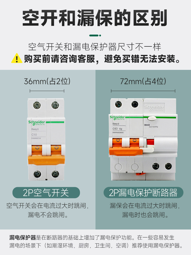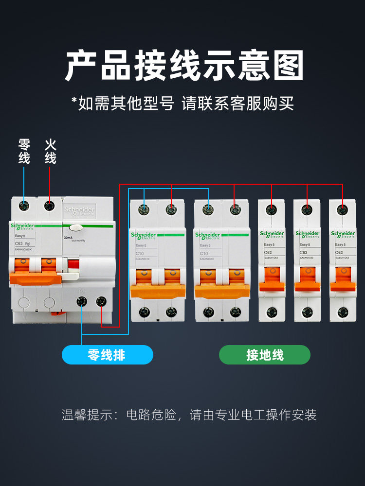 施耐德官方旗舰店漏电保护器 E9家用4P空开带漏保10A-63A断路器