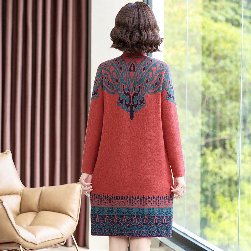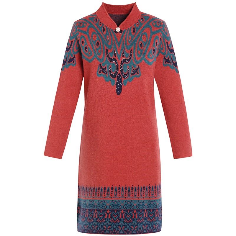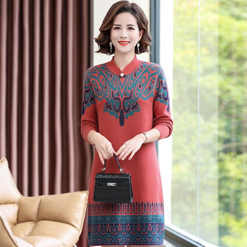 妈妈装秋冬旗袍中长款羊毛打底衫洋气质中老年女装毛衣宽松连衣裙