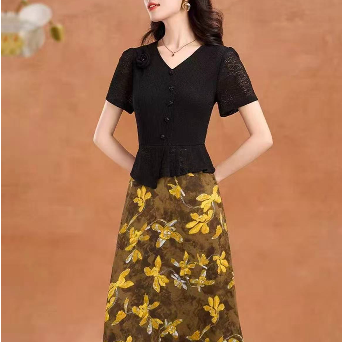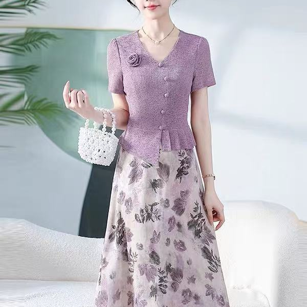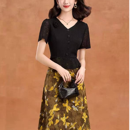 B109 夏款新款高级感时尚洋气高端气质假两件连衣裙