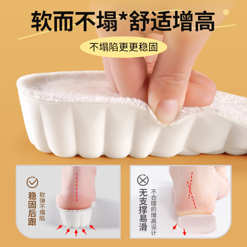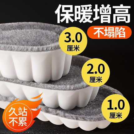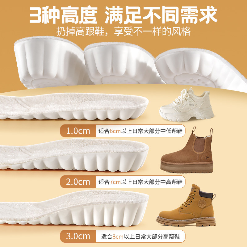 羊毛保暖内增高鞋垫女新款冬季加绒加厚踩屎感不塌陷1cm增高男款