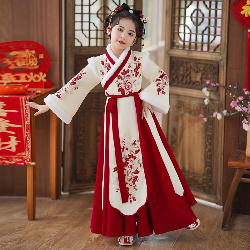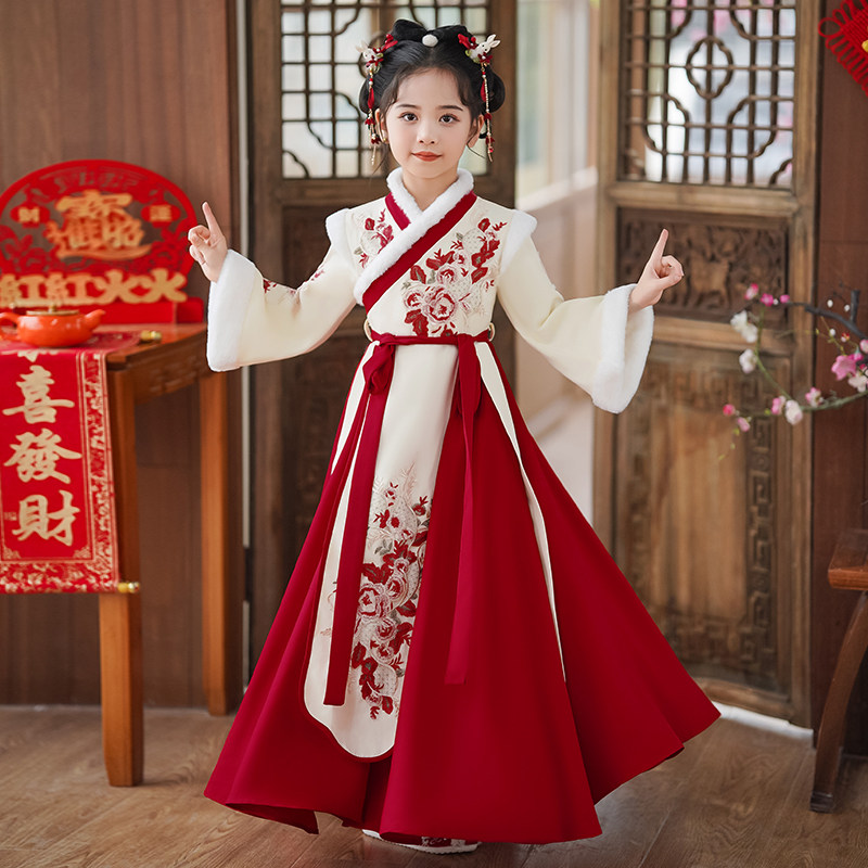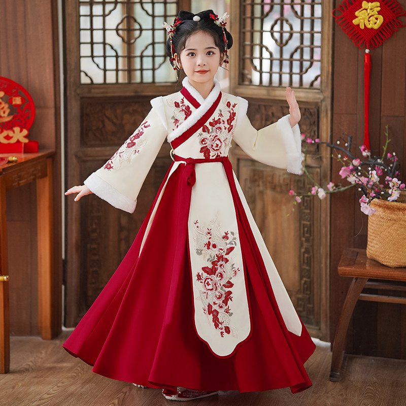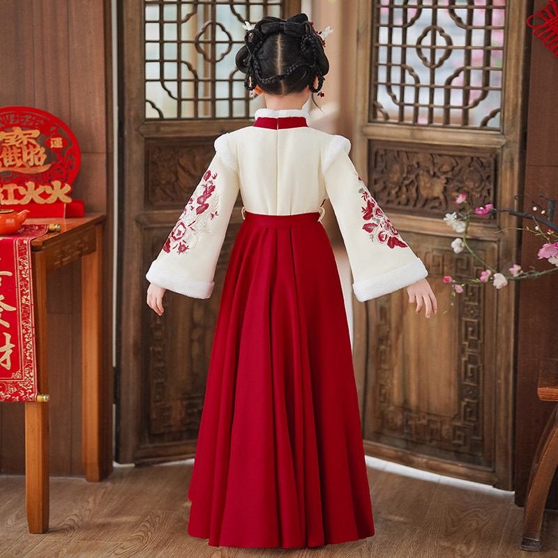 女童新中式唐装冬装儿童2025新款加绒连衣裙拜年服汉服过年服古装