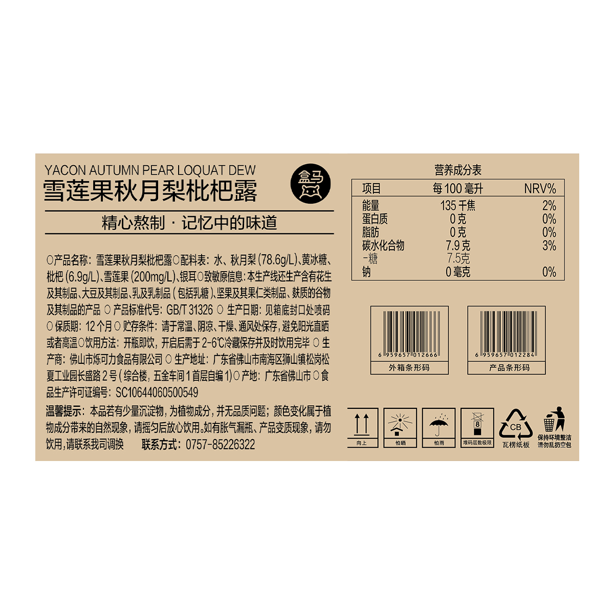 盒马 雪莲果秋月梨枇杷露 900ml*6瓶