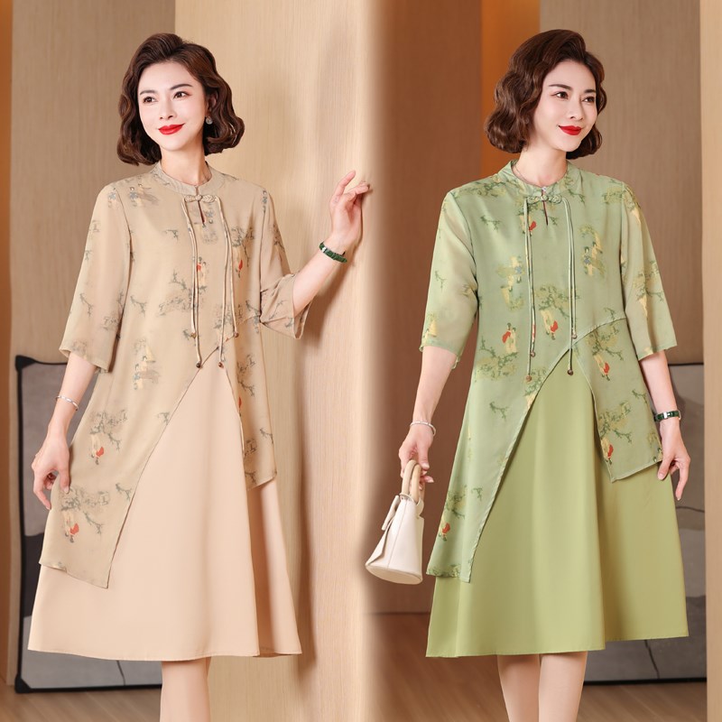 现货速发中年妈妈夏装洋气质连衣裙新款中式改良旗袍裙子中老年装