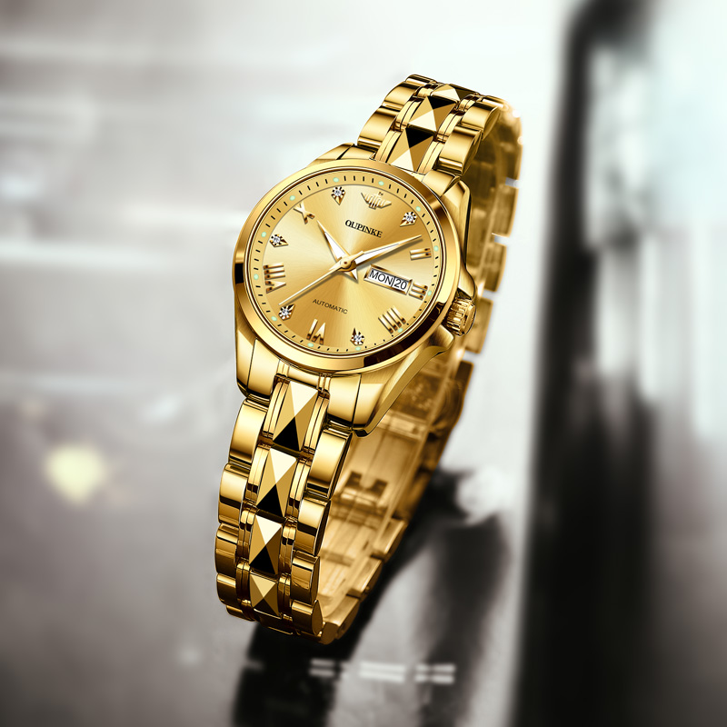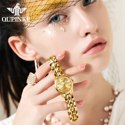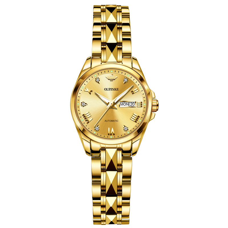 瑞士机械表全自动欧品客手表女高档品牌十大女表夜光金表镂空3171