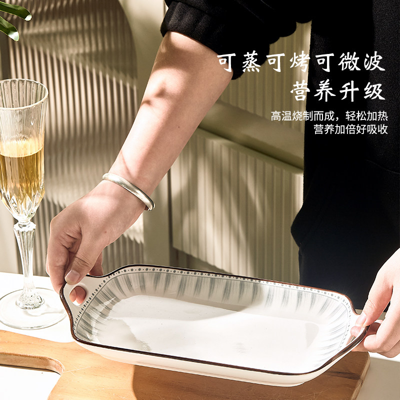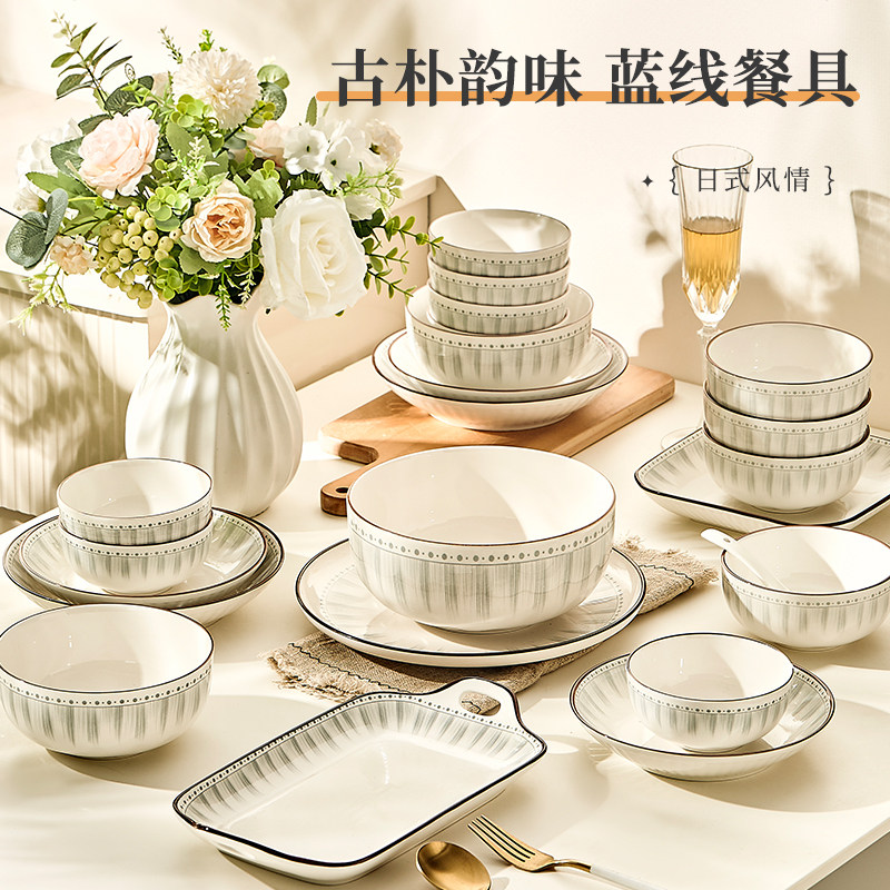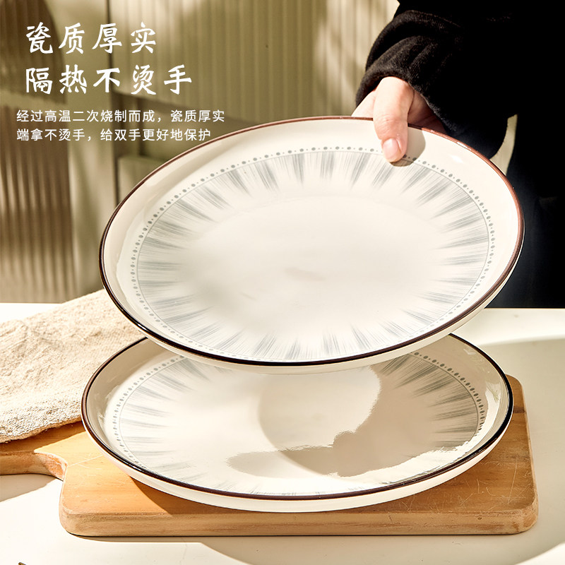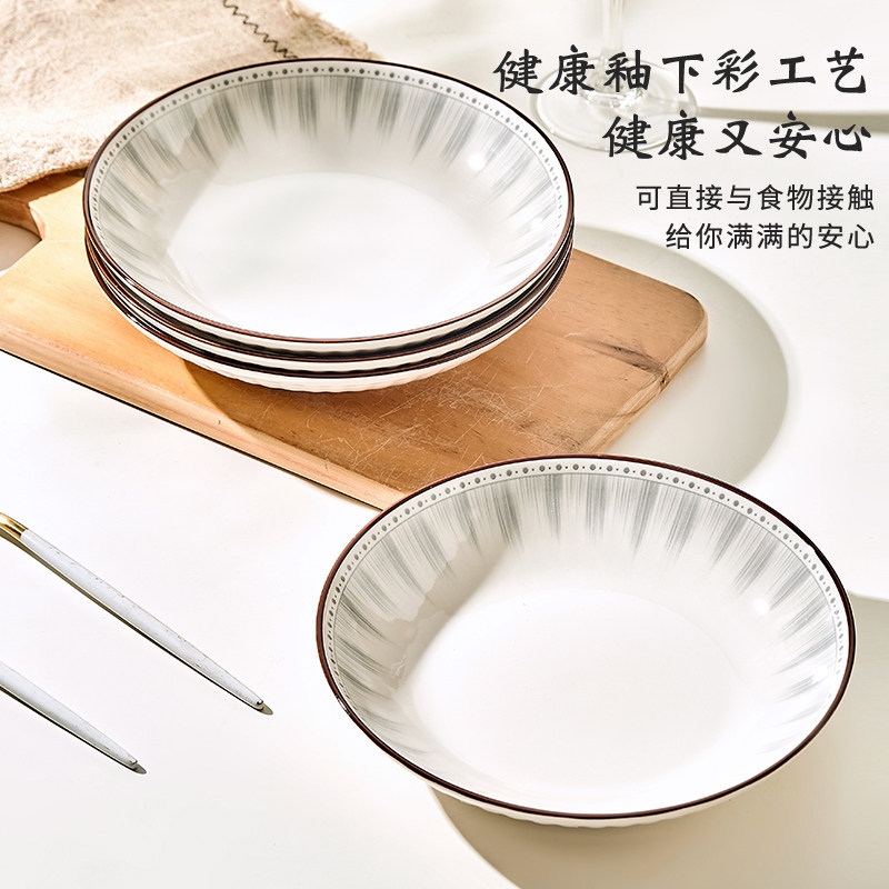 日式家用盘子菜盘简约陶瓷碗碟套装碗盘餐具深盘碟子方盘高级感