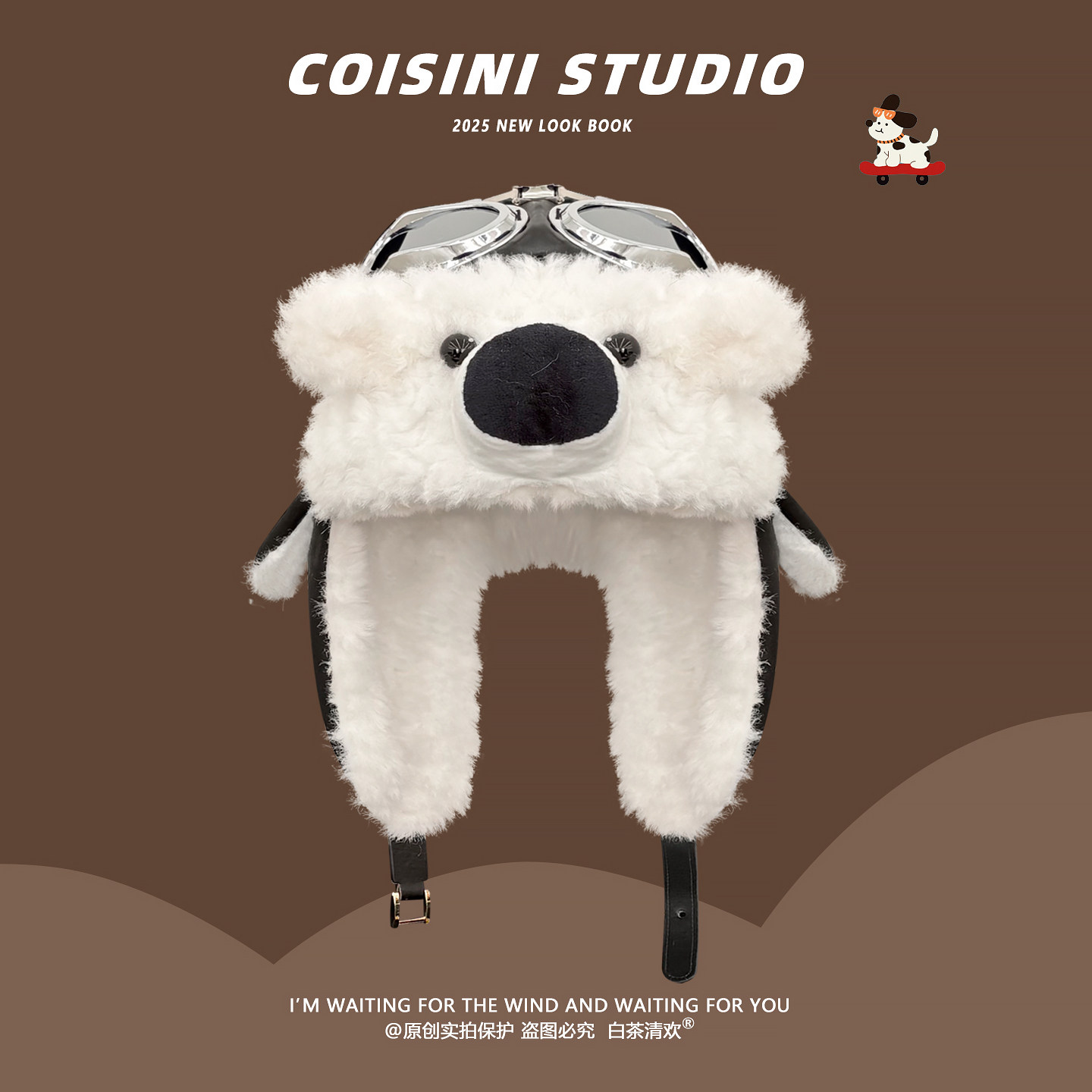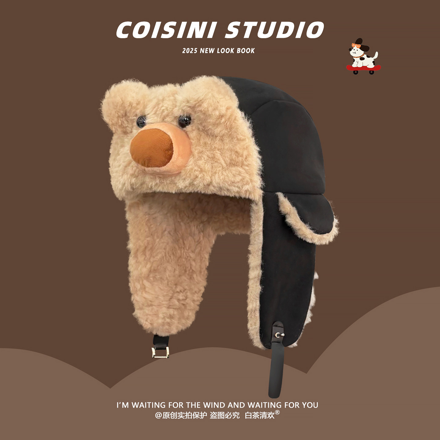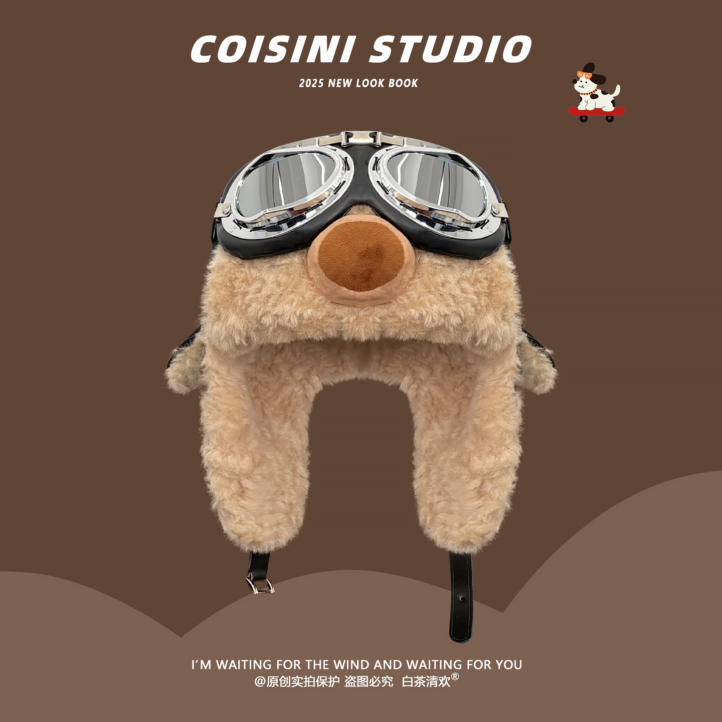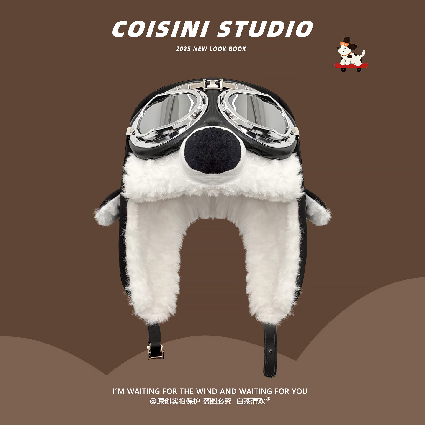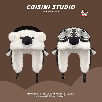 可爱卡通史努比飞行员眼镜帽子男女冬护耳雷锋帽骑行加绒保暖防风