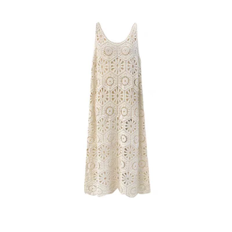 镂空吊带长裙夏法式高端精致大码女装赫本风气质百搭外搭连衣裙子