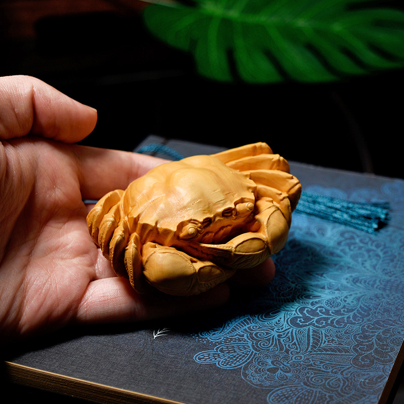 黄杨木雕刻木质螃蟹纵横t天下手把玩件富甲天下茶宠工艺品八方来