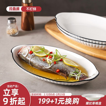 川岛屋陶瓷鱼盘家用蒸鱼专用盘子
