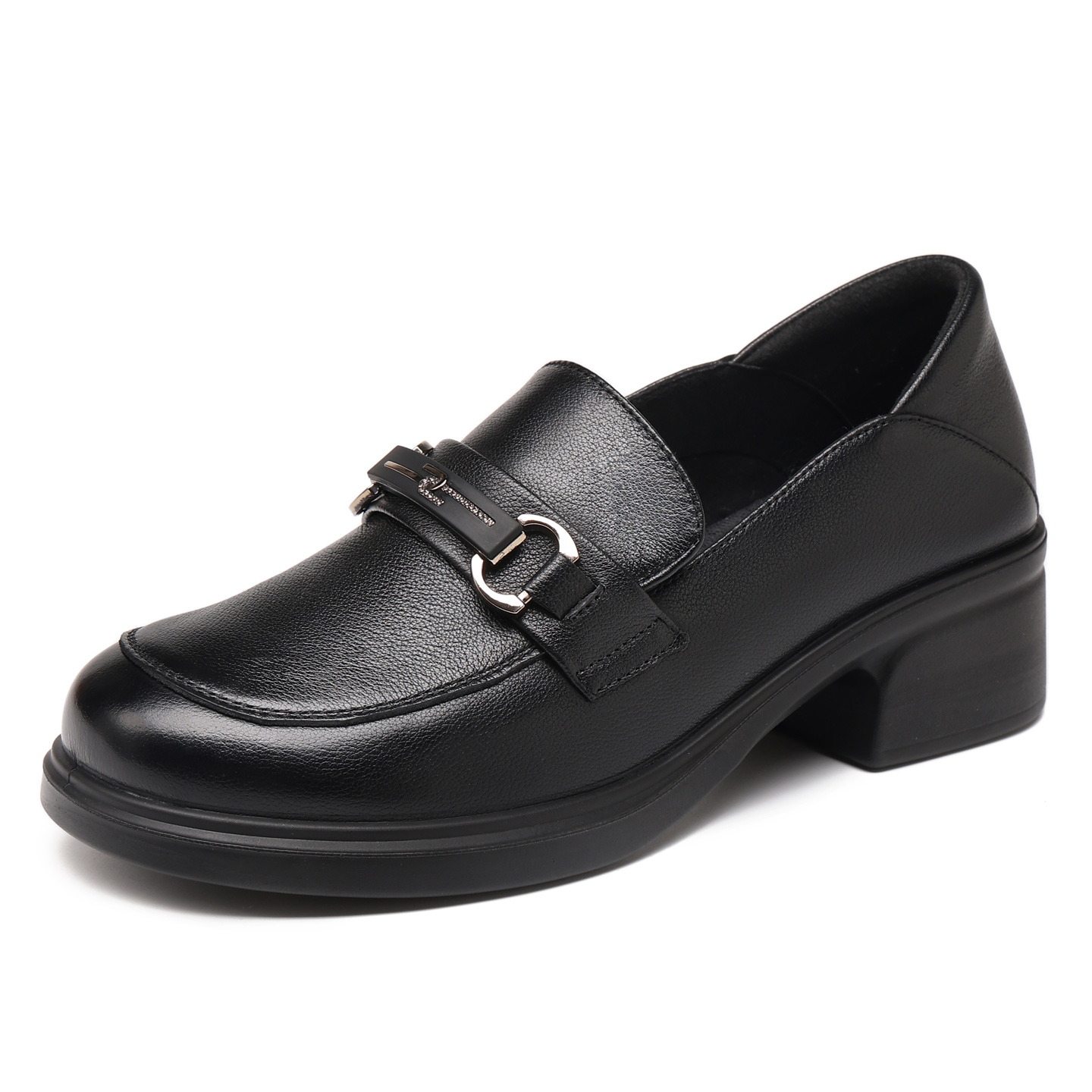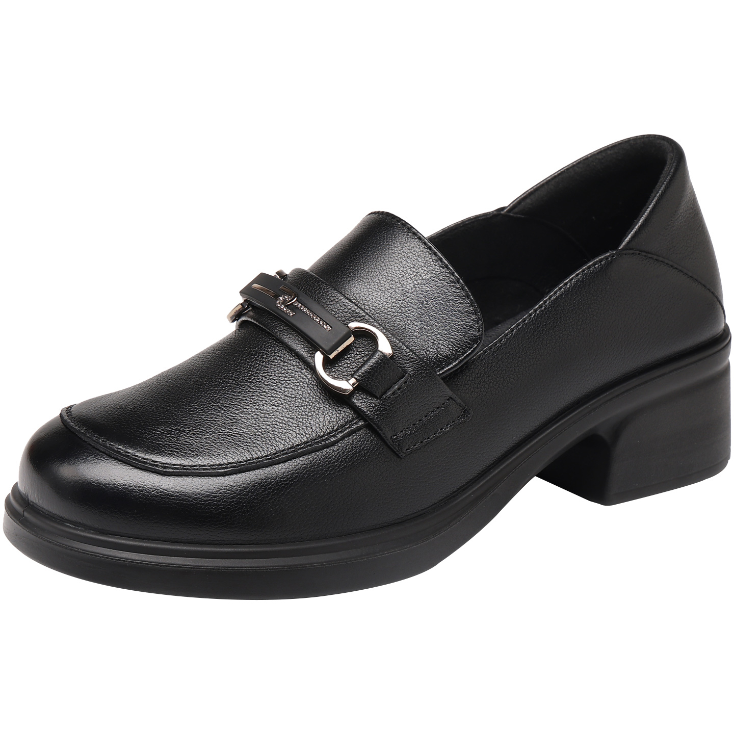 牛皮粗跟4厘米真皮单鞋软皮女鞋