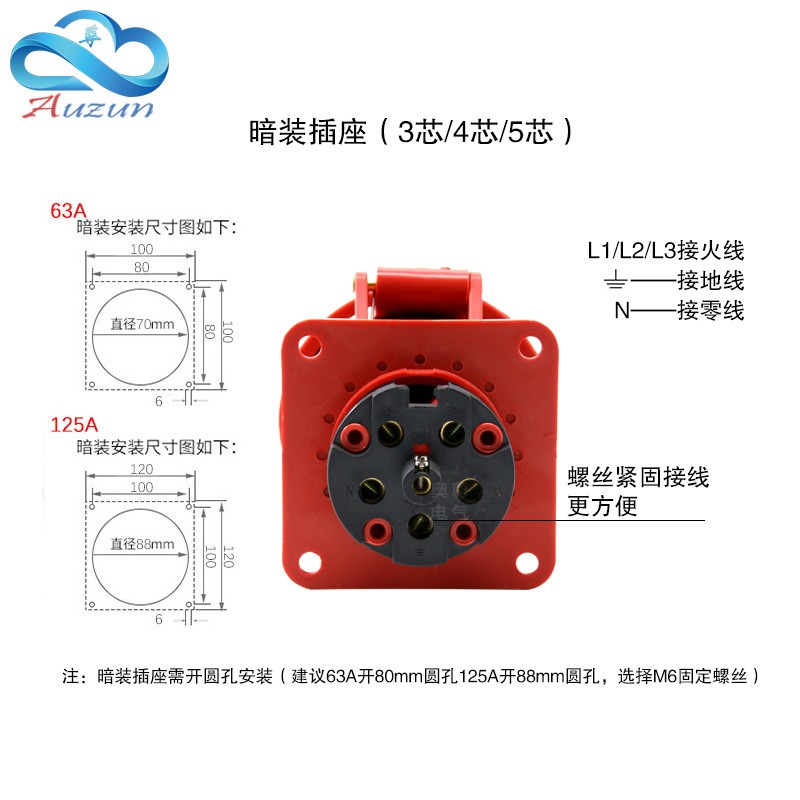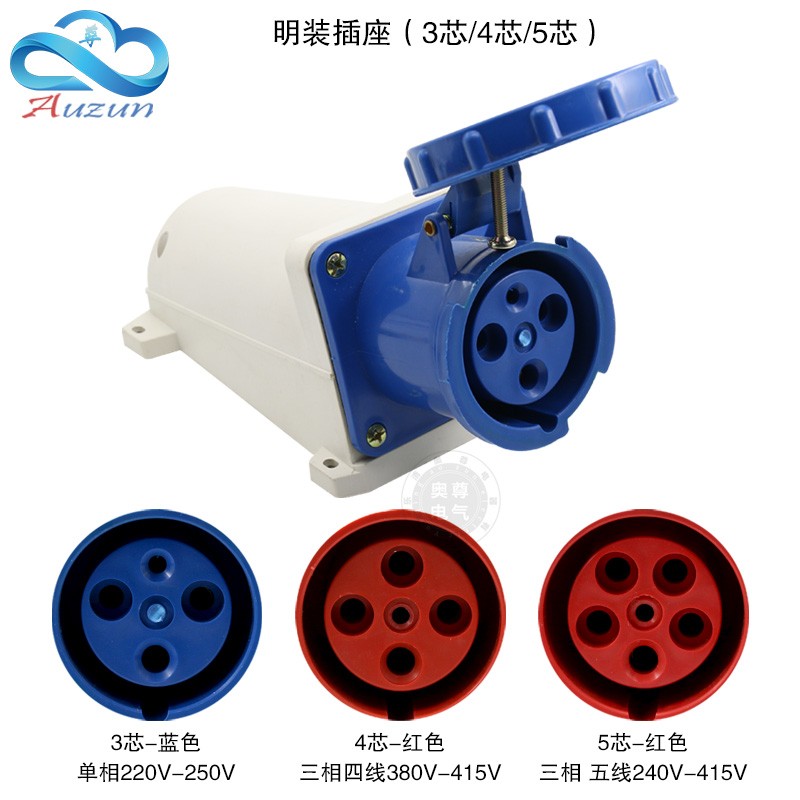 工业防水插头插座3芯4芯5芯孔63A 125A连接器三相电对接航空插头